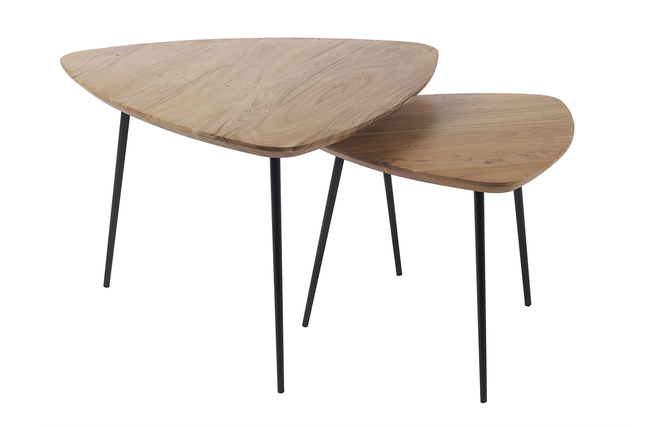 Conçues en acacia massif, une essence de bois robuste aux sublimes tons rougeoyants, elles apportent une note chaleureuse au décor. Leurs plateaux en bois reposent sur des pieds en métal noir : ce superbe contraste donne beaucoup de caractère à l'ensemble !