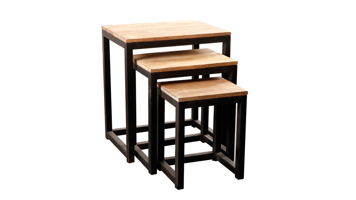 Un esprit loft très marqué pour ces tables gigognes industrielles FACTORY : l'alliance de l'acier et de l'orme leur confère un style authentique très recherché.