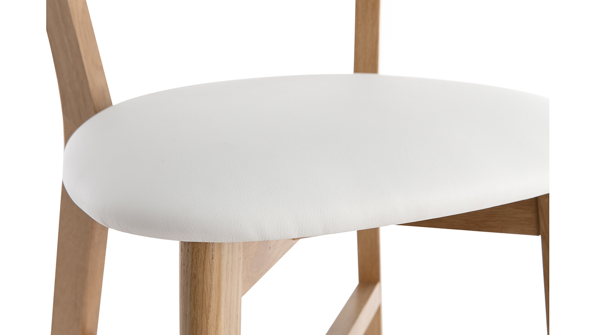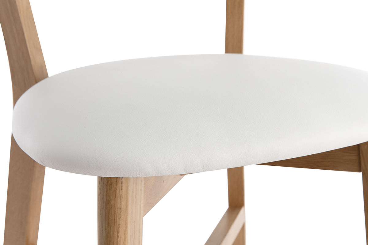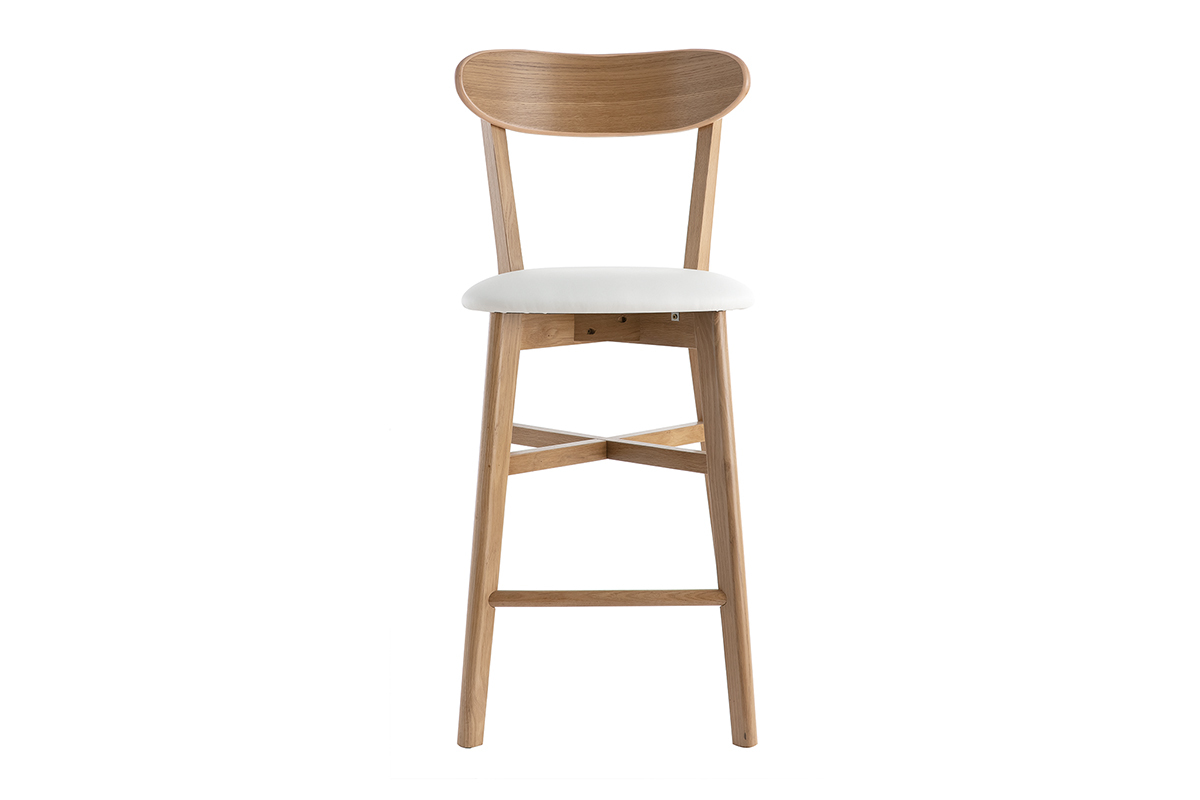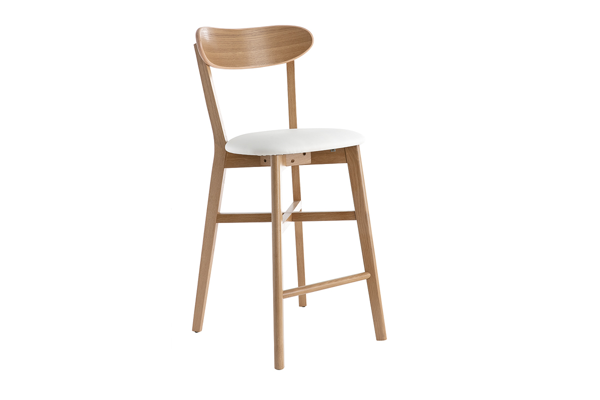 Une jolie structure avec un dossier en contreplaqué courbé ; un piètement en chêne massif élégant ; des lignes tout en douceur... pas de doute : le tabouret de bar DOVE s'inscrit dans la lignée des chaises bistrot avec brio. Sa superbe allure rétro s'exprime loin des effets de mode pour un intérieur hors du temps. Avec son assise rembourrée et son dossier incurvé, ce tabouret de bar vintage offre un excellent confort. L'assise est habillée d'un joli revêtement en polyuréthane blanc. Il se marie parfaitement avec le bois clair tout en facilitant l'entretien de votre chaise de bar. L'ensemble de la structure est recouverte d'un vernis transparent afin de nourrir et protéger le bois.