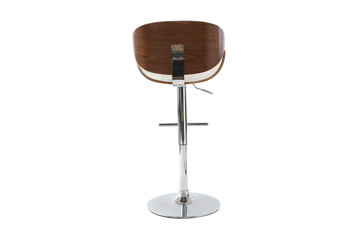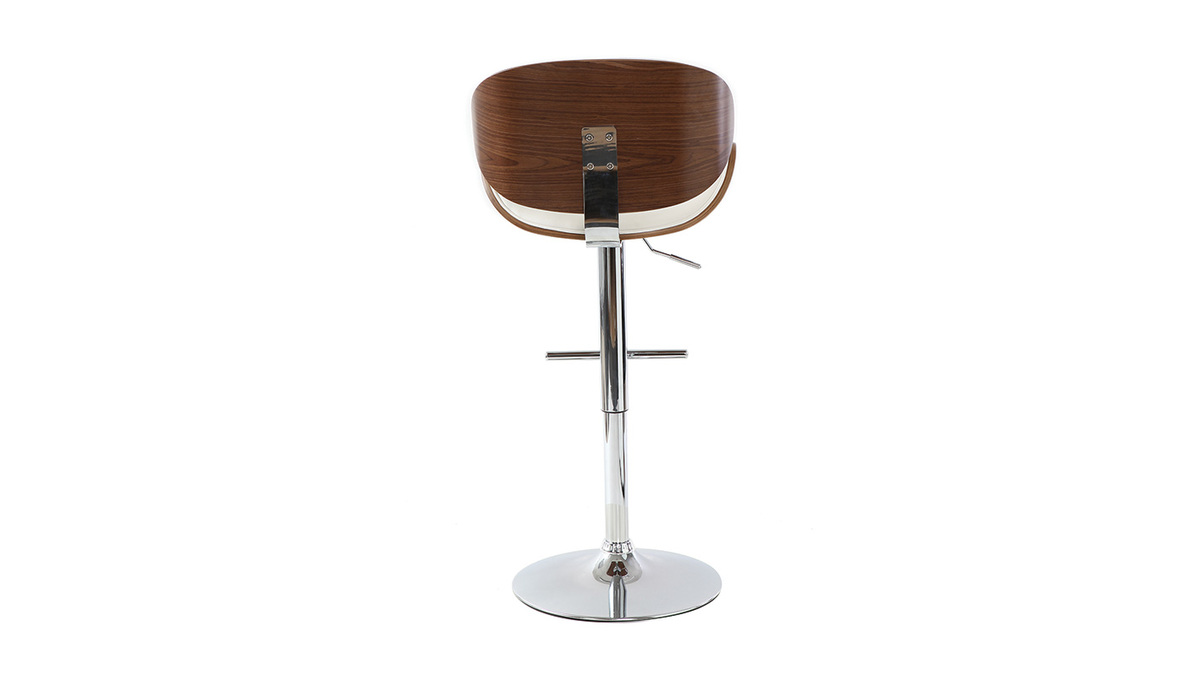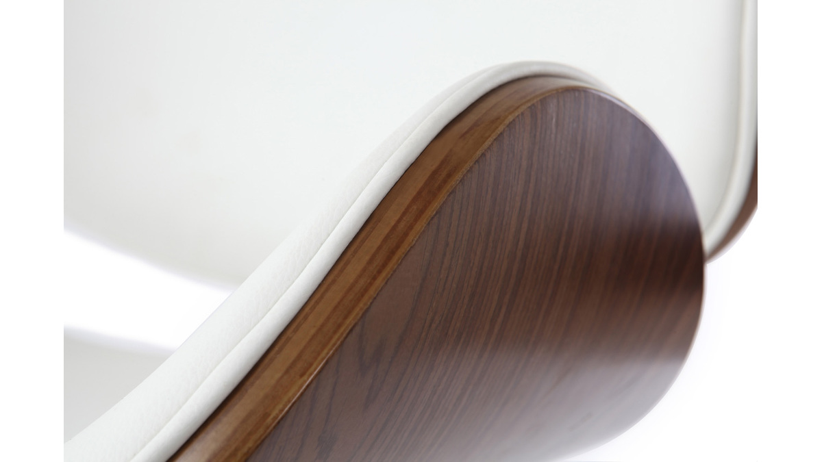 Allure extrêment enveloppante pour le tabouret de bar WALNUT ! Son assise et son dossier en polyuréthane blanc, très faciles d'entretien, contrastent agréablement avec sa structure en bois cintré finition noyer qui lui assure un look vintage très tendance.