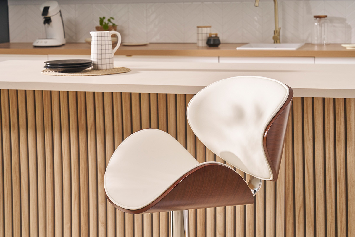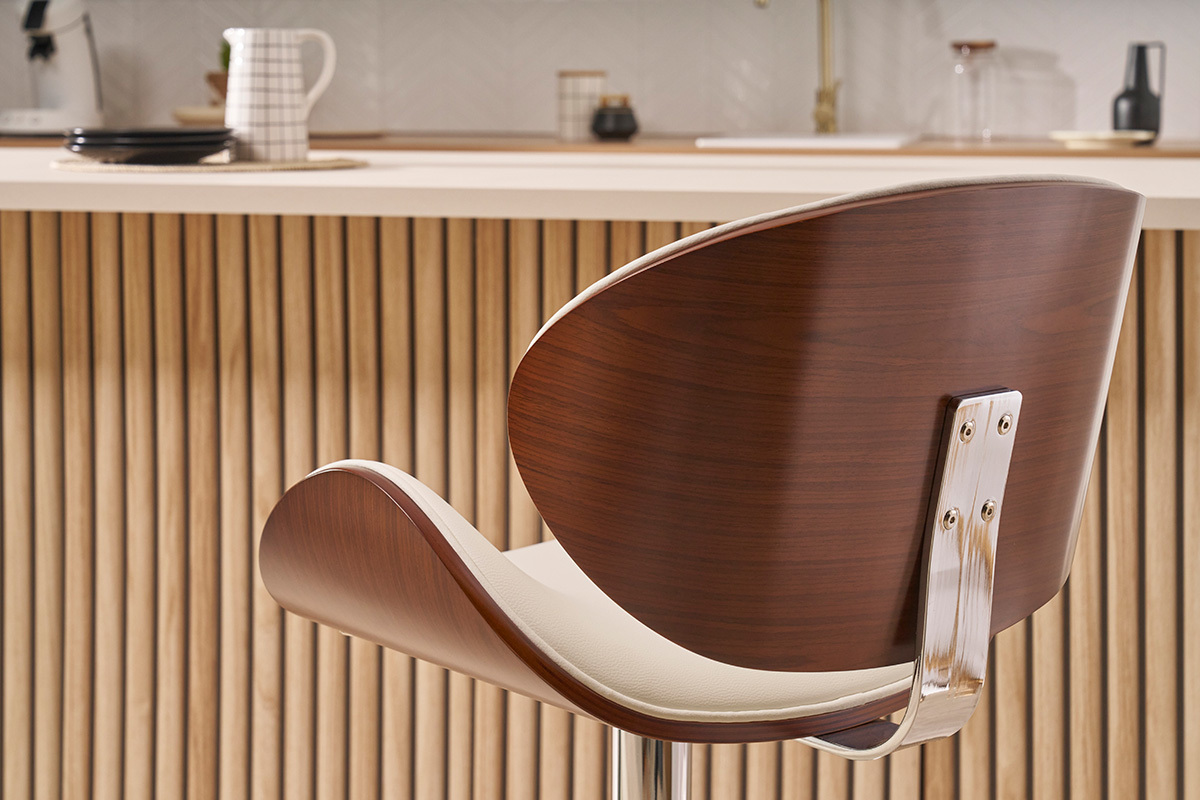 Le tabouret de bar design WALNUT offre un grand confort grâce à son assise et à son dossier rembourrés. Pratique et fonctionnel, il est réglable en hauteur grâce à un vérin pneumatique sans palier et est pivotant. Il peut être utilisé aussi bien pour un bar que pour l'îlot de votre cuisine américaine.
