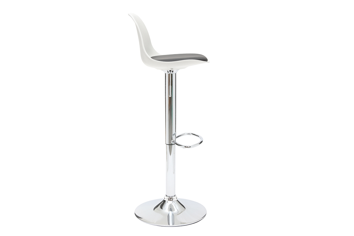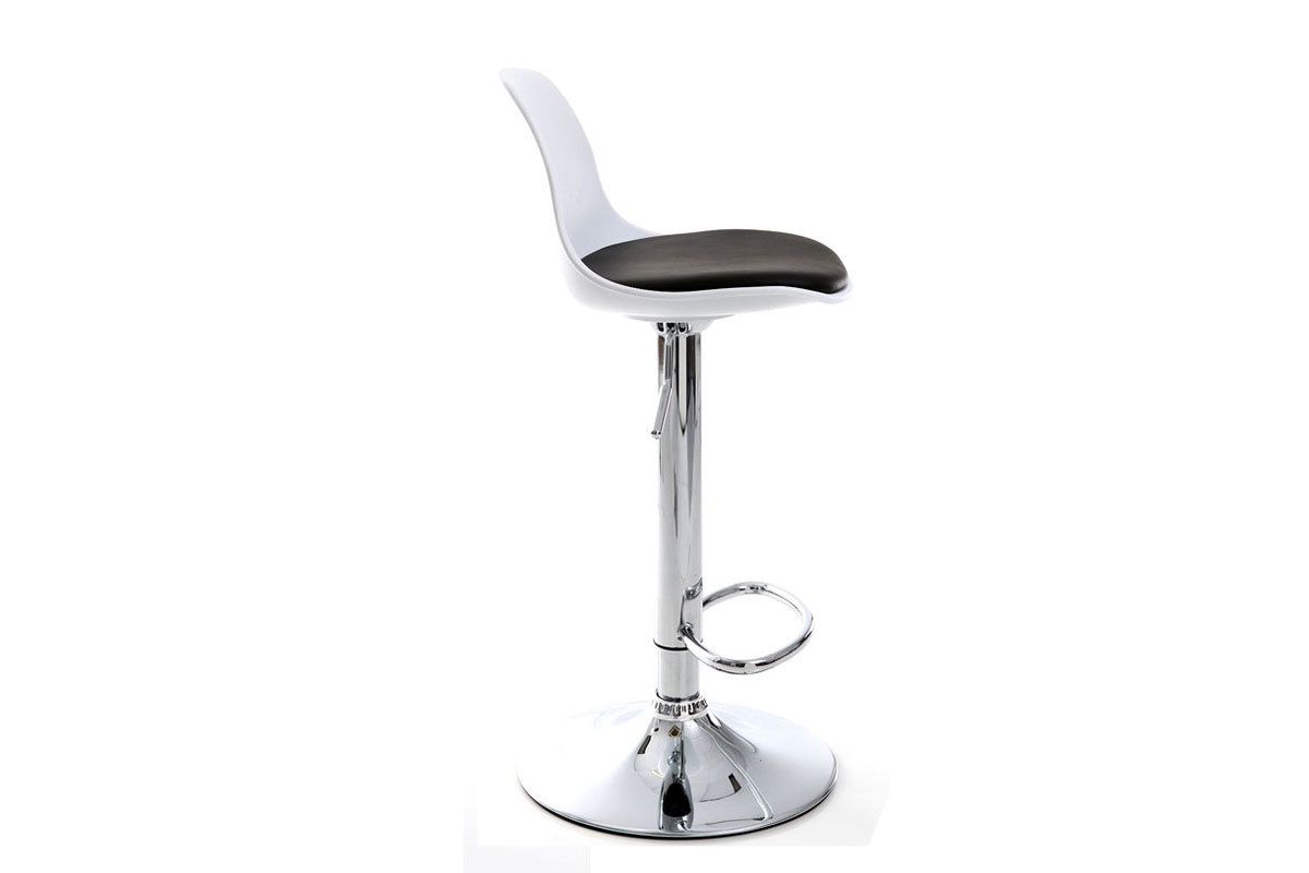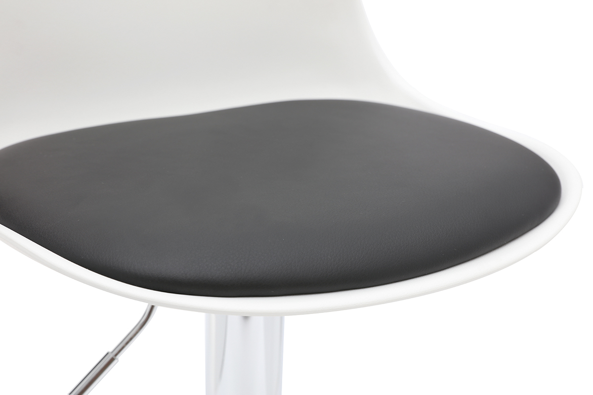 Le tabouret de bar design STEEVY est en polyuréthane et polypropylène, le socle et le repose-pied sont en métal chromé. Rotation 360°.