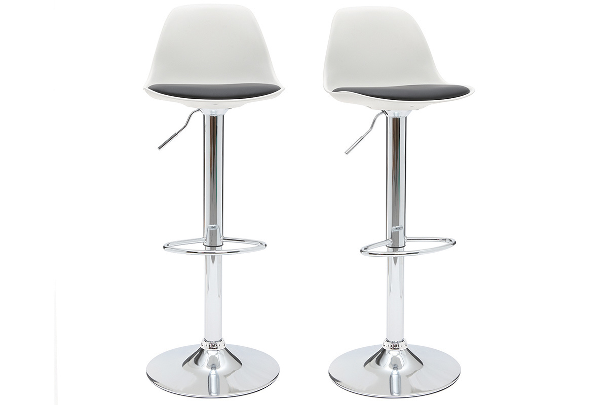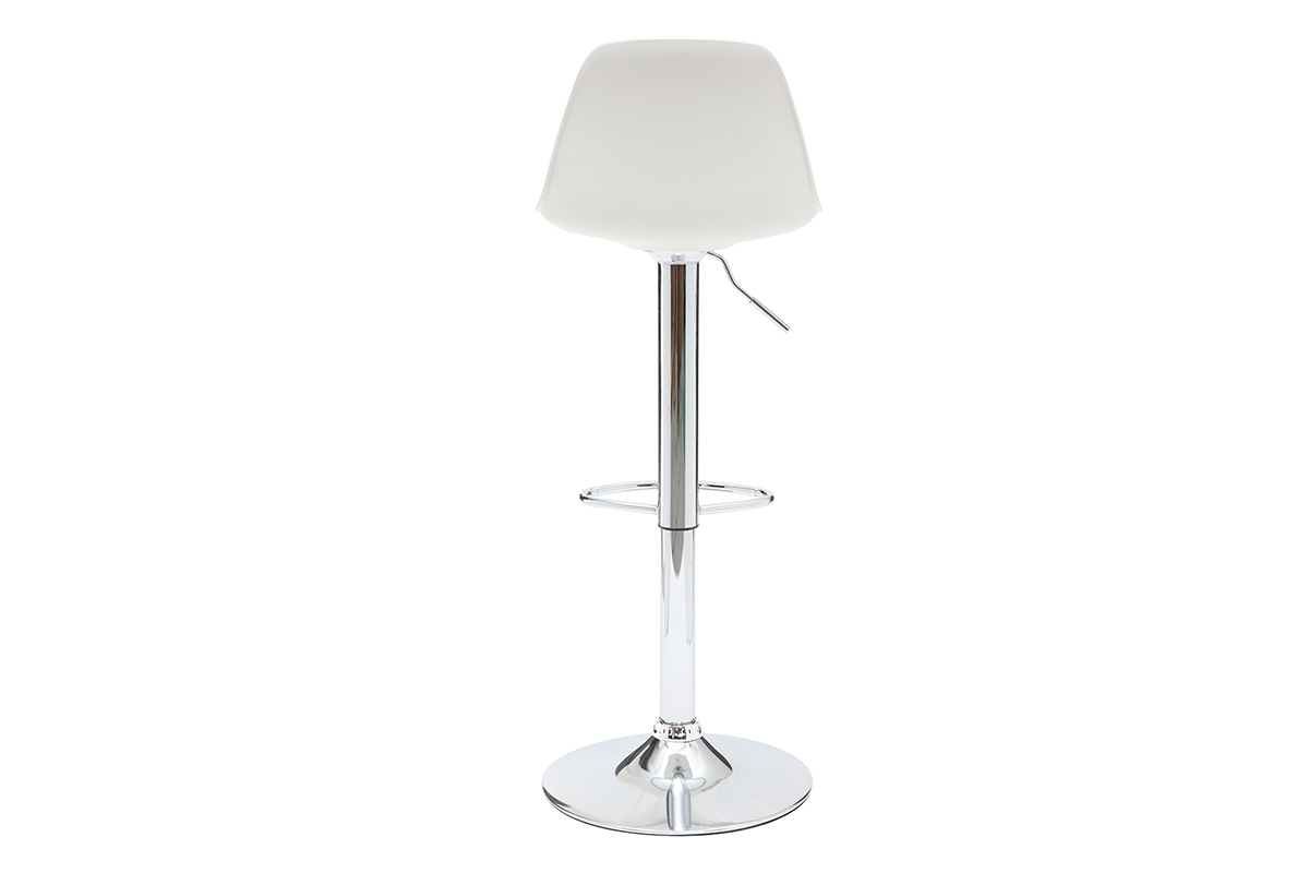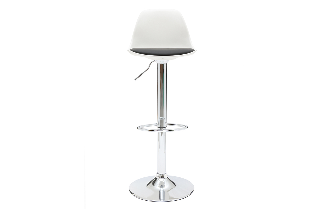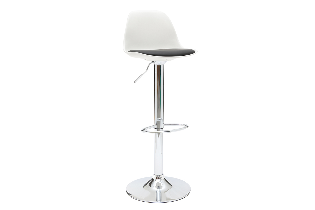 Le tabouret de bar design STEEVY est en polyuréthane et polypropylène, le socle et le repose-pied sont en métal chromé. Rotation 360°.