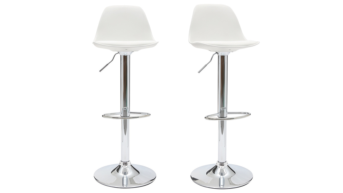 Imaginez le confort de la chaise STEEVY décliné en tabourets de bar chics et tendance. Leur assise et leur dossier sont très confortables et vous aurez très vite l'impression d'être dans des fauteuils ! Leur teinte blanche associée à un piétement chromé offre un rendu contemporain, idéal pour aménager un coin repas dans un intérieur minimaliste et moderne. Ces tabourets de bar design seront parfaits à la fois pour un bar et pour l'îlot de votre cuisine américaine.