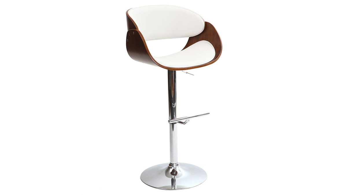 Allure extrêmement stylée pour le tabouret de bar BENT ! Son assise et son dossier en polyuréthane blanc, très faciles d'entretien, contrastent agréablement avec sa structure en bois cintré finition noyer qui lui assure un look vintage très tendance.