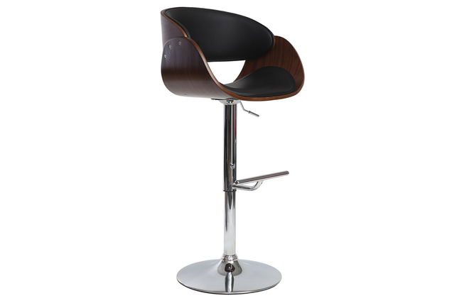 Son assise et son dossier en polyuréthane noir, très faciles d'entretien, contrastent agréablement avec une structure en bois cintré noyer qui lui assure un look vintage très tendance.