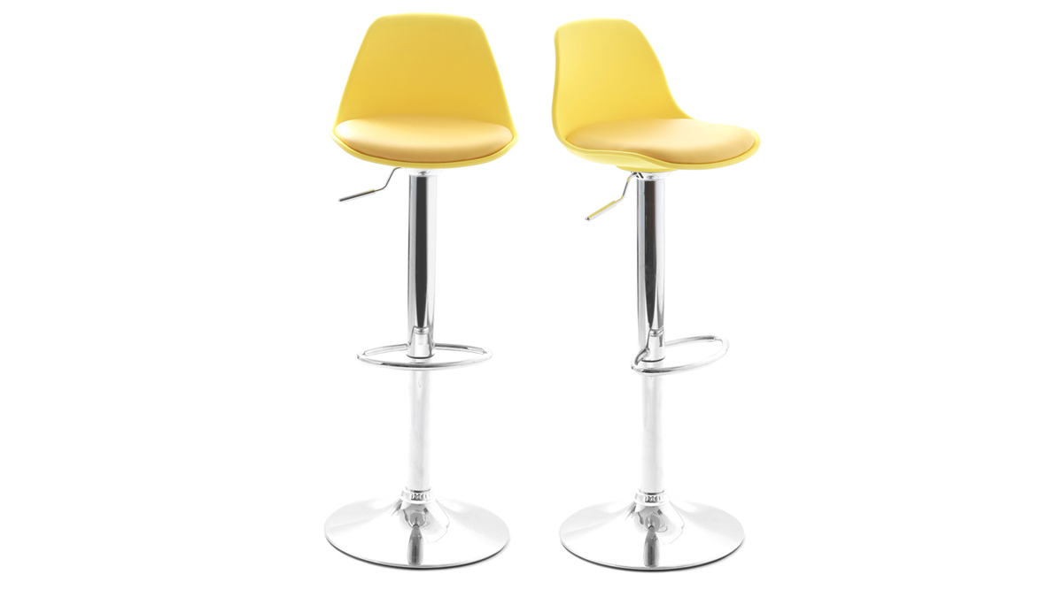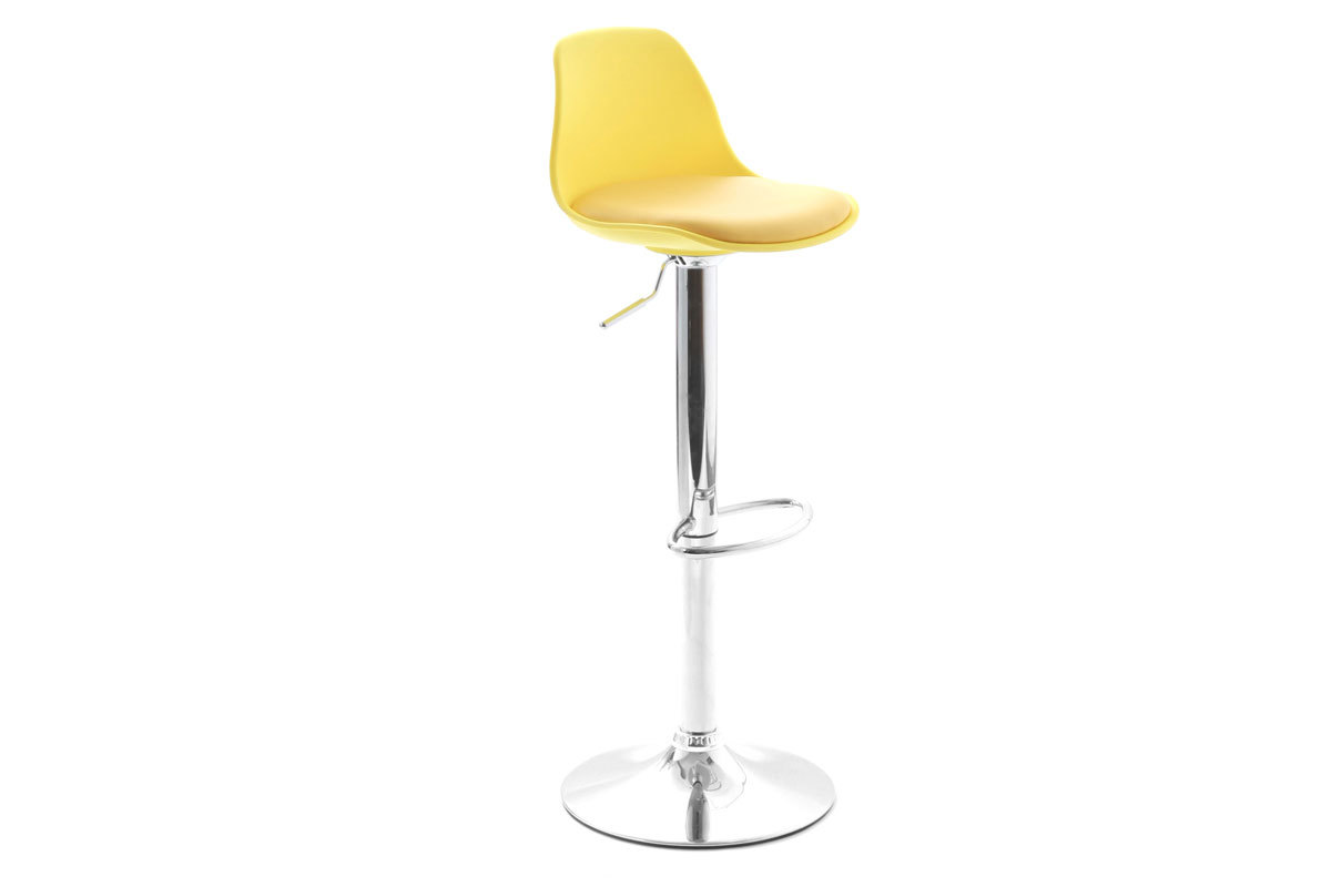 Le tabouret de bar design STEEVY est en polyuréthane et polypropylène, le socle et le repose-pied sont en métal chromé, poids du colis : 13 kg, hauteur totale de 83 à 105 cm (dossier inclus), rotation 360°.