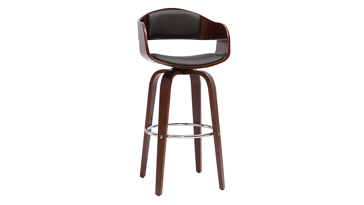 Tabouret de bar design noir et bois foncé noyer H65 cm pivotant 360° GAO livré prêt à assembler.