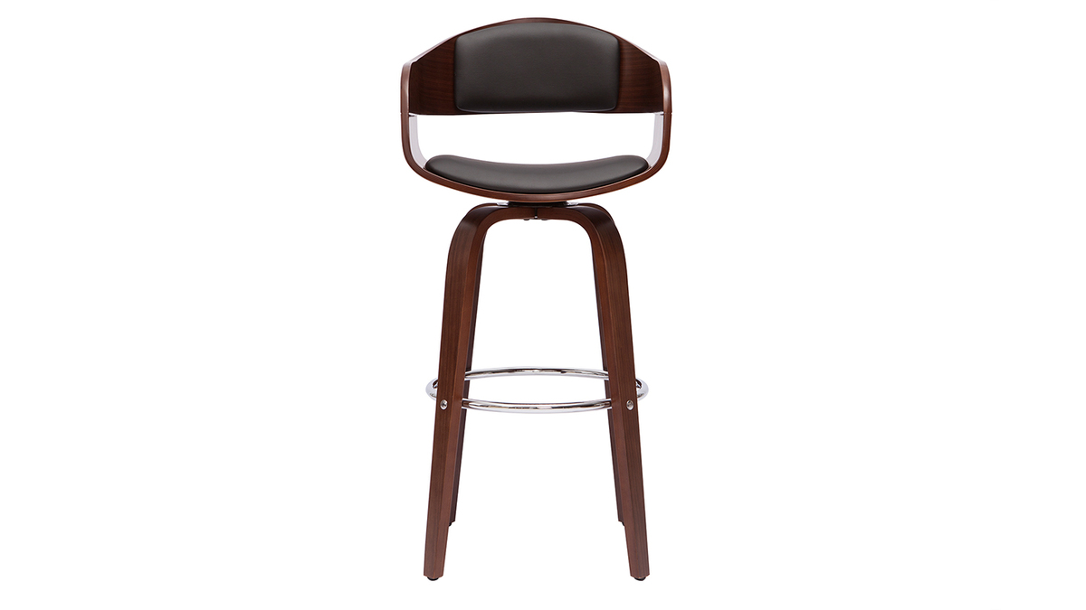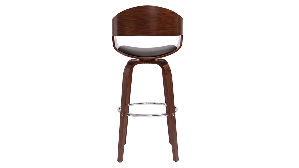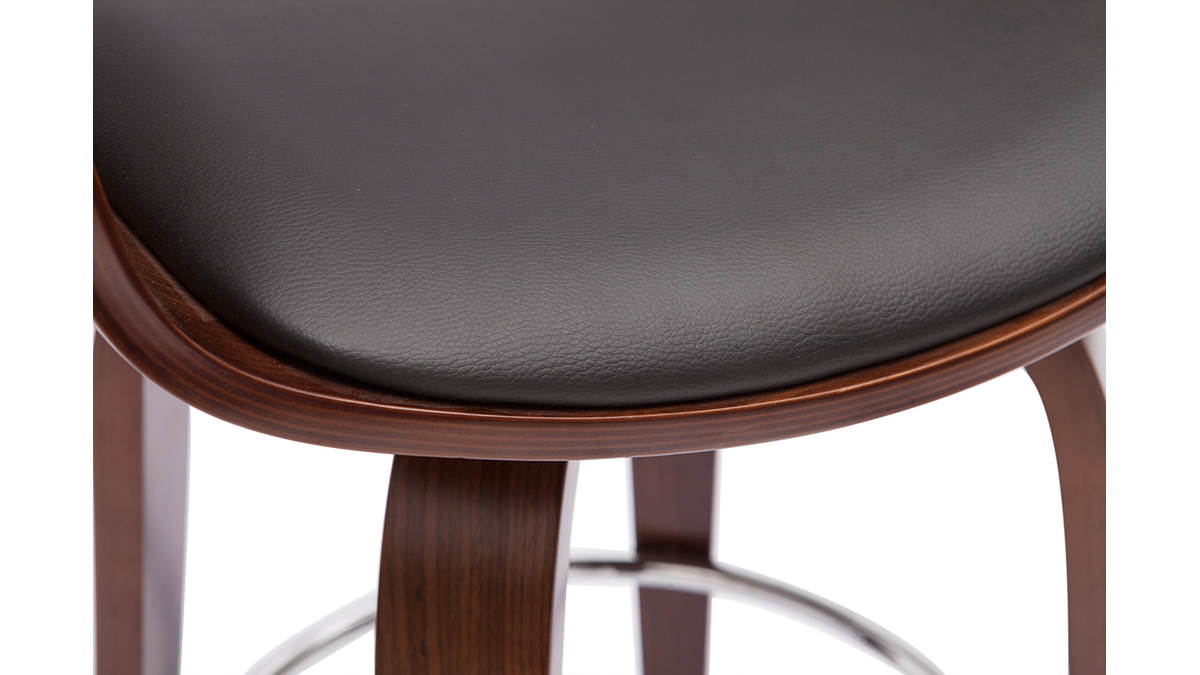 Sa structure en contreplaqué noyer et ses pieds en hêtre massif teintés en font un siège chaleureux au charme authentique. Le bois cintré donne à l'assise cette forme unique tout en rondeurs. L'élégante simplicité de ce tabouret de bar design bois foncé, noir et acier chromé lui permet de se glisser dans tous les intérieurs.
