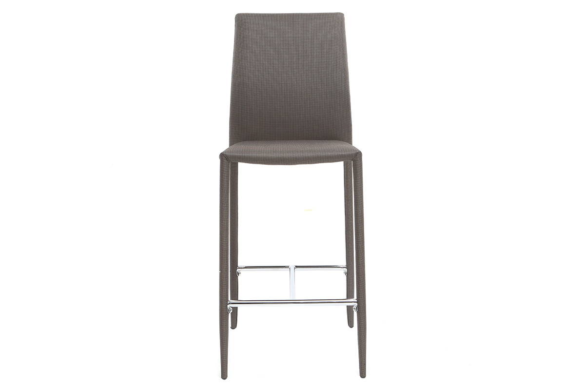 Très fonctionnel, la structure est en acier laqué, recouverte de tissu en fibres de PVC beige. L'assise et le dossier sont rembourrés de mousse (densité 15-18kg/m³) et recouverts de tissu en fibres de PVC taupe. Le repose pieds est en acier inoxydable chromé.