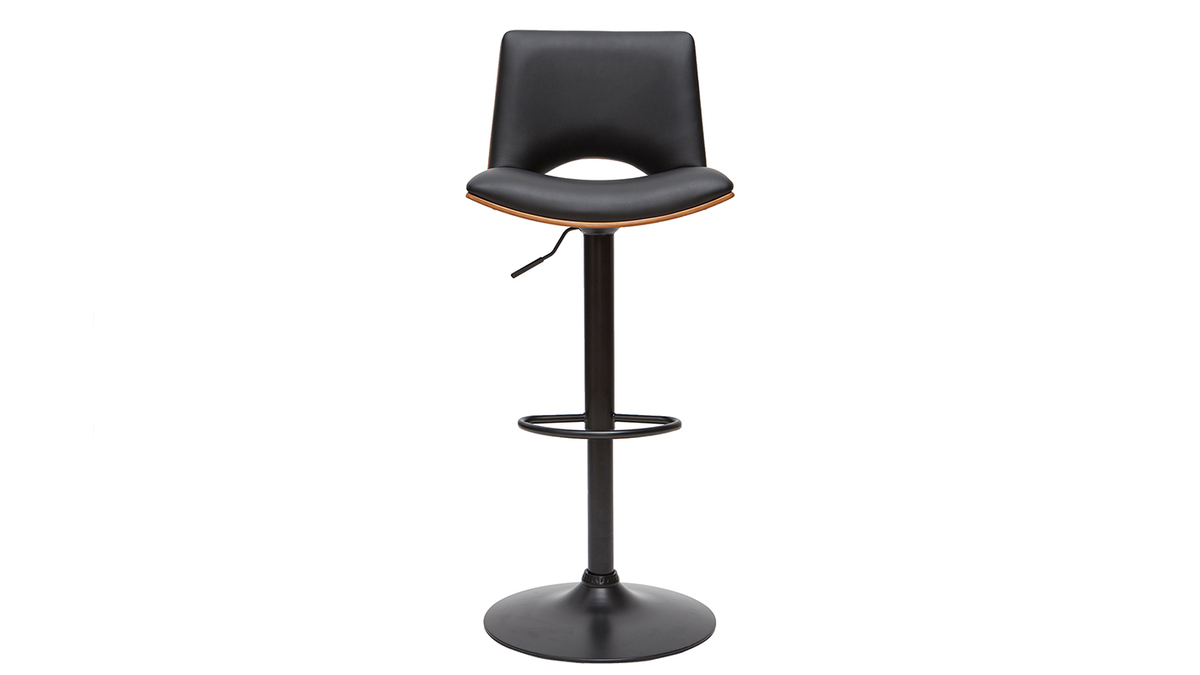 Tabouret de bar design réglable noir et bois foncé PANACH livré prêt à monter.
