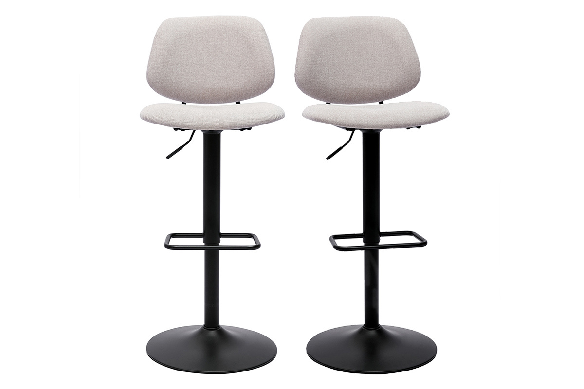 Palette chromatique qui mêle beige et noir, jeu de textures entre tissu effet velours et métal : ces tabourets relevables réunissent tout ce que l'on aime chez les meubles contemporains. Modernes à souhait, ces chaises de bar séduisent par leur allure soignée parfaitement maîtrisée.