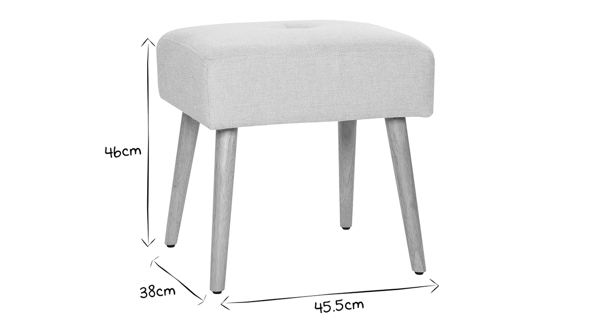 Matières : tissu 95% polyester et 5% nylon, piètement en bois hévéa massif