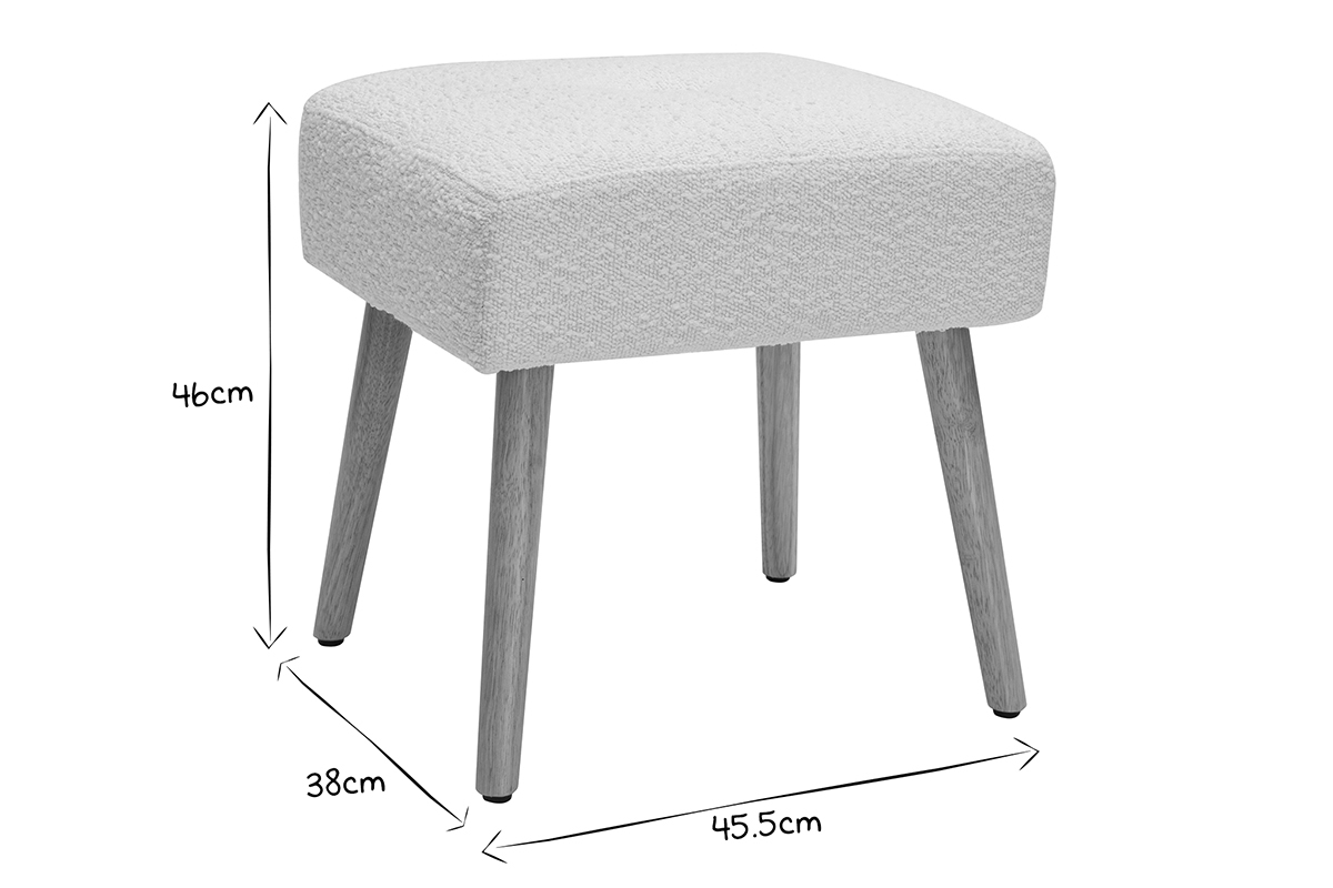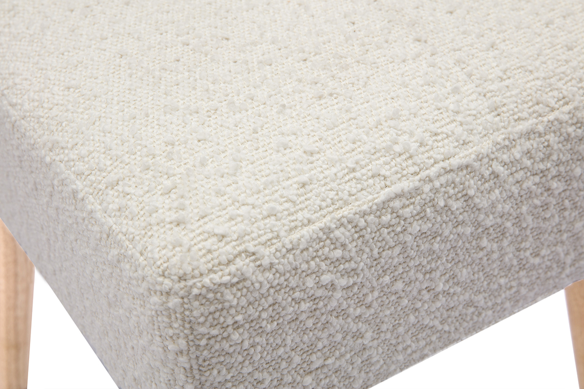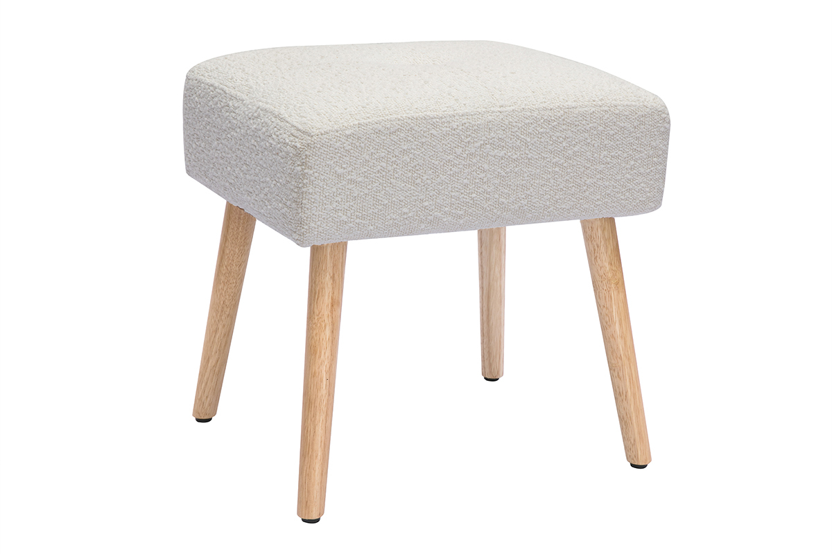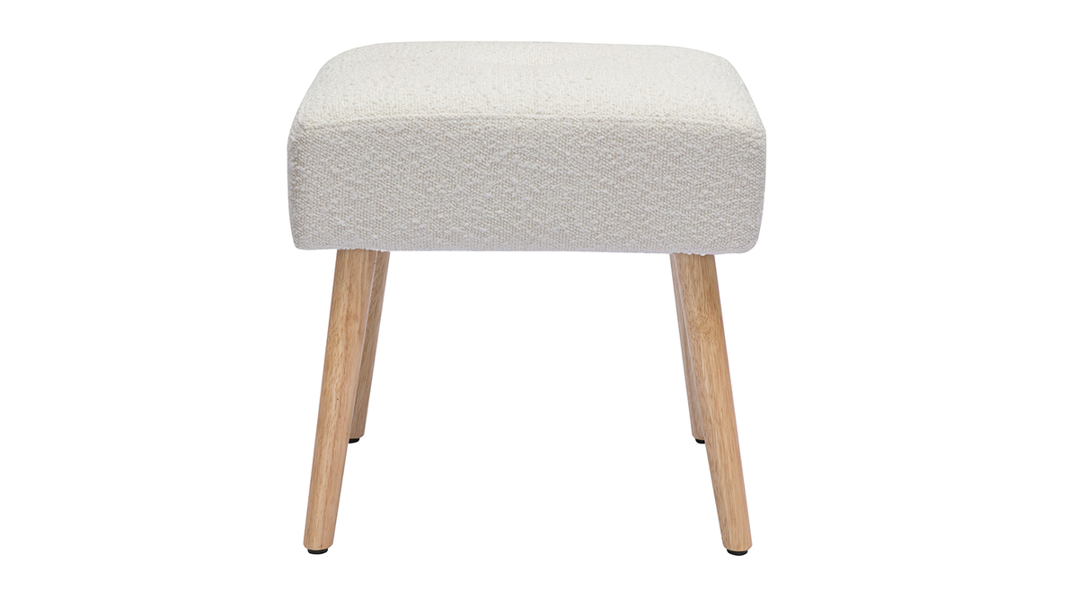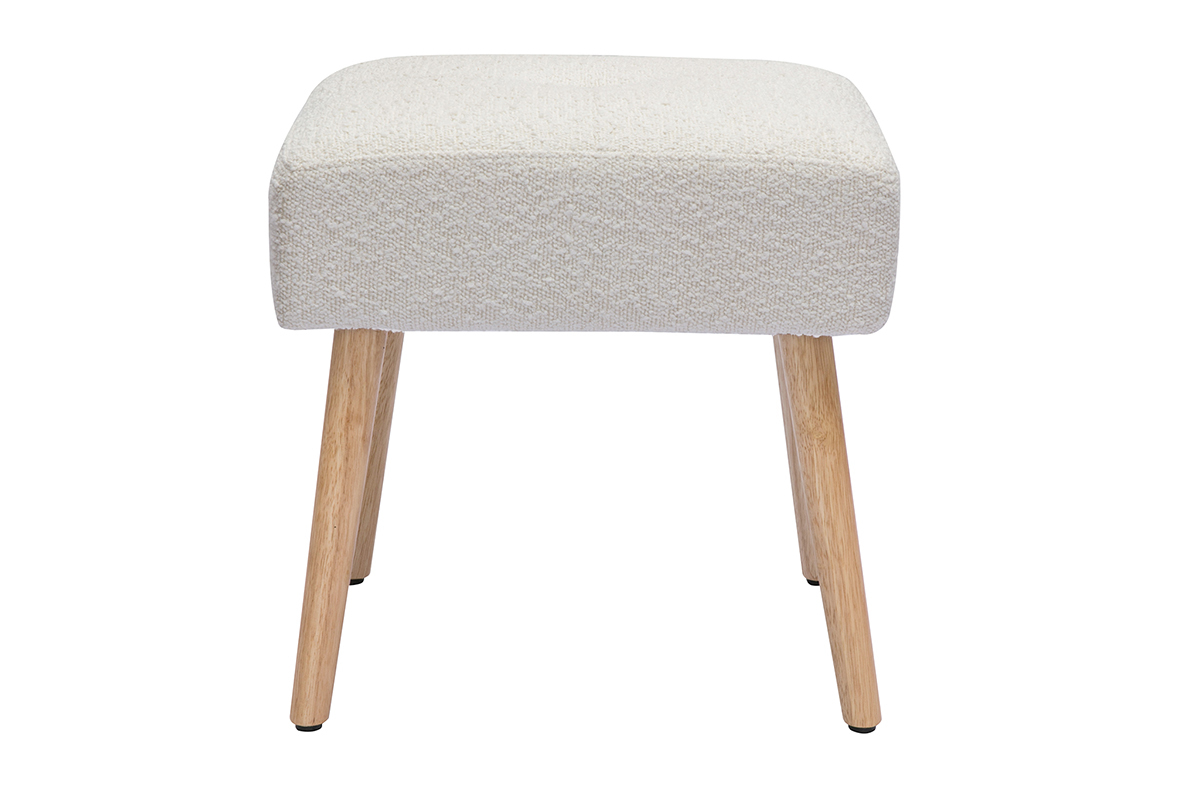 Capitonnée, l'assise aux volumes généreux est garnie d'une mousse (densité 25 kg/m³) et habillée d'un tissu effet laine bouclée blanc. Formant un siège confortable, l'ensemble est allégé par quatre pieds en hévéa massif. De quoi agrémenter votre nid douillet !