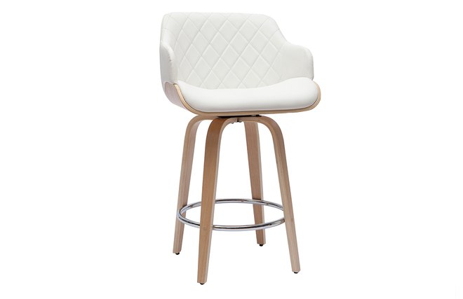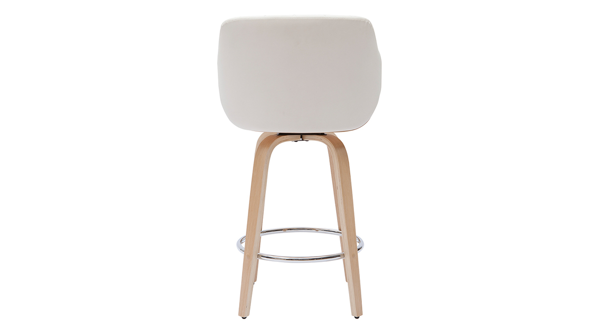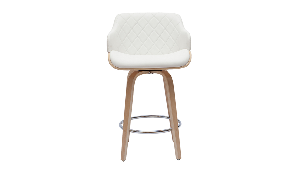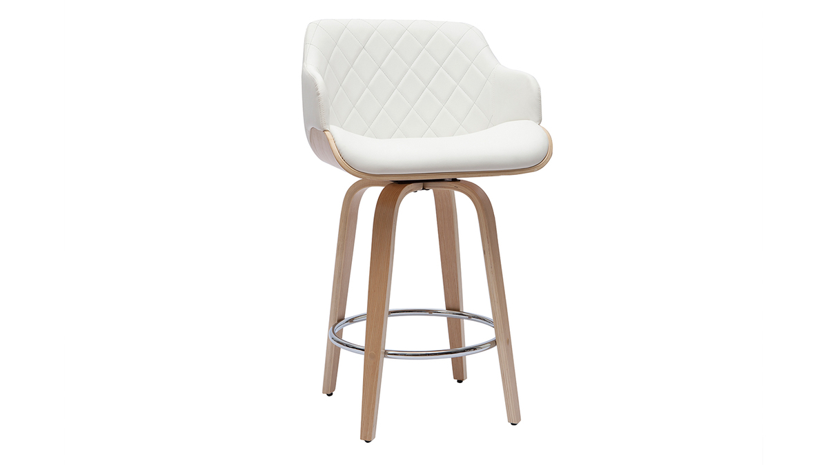 Tabouret de bar design pivotant 360° blanc et bois clair H65 cm LUCIEN livré prêt à assembler.