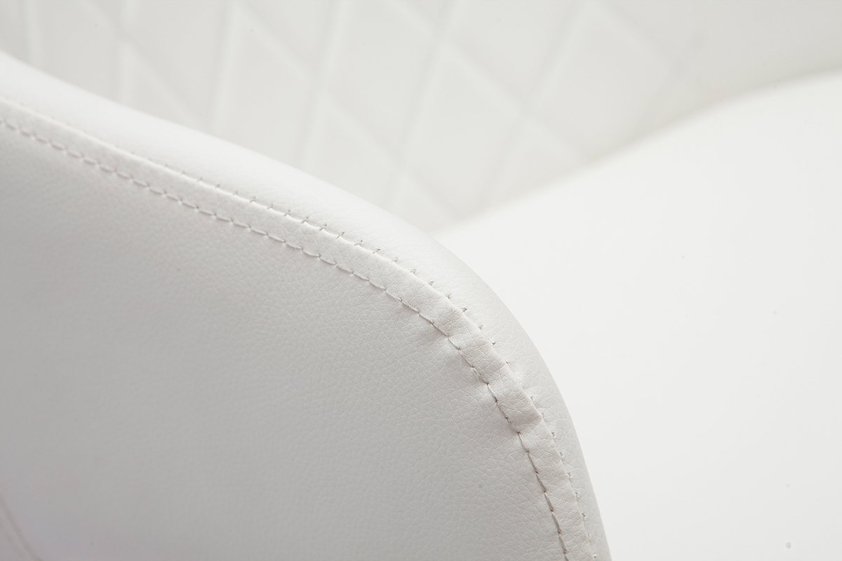 L'association du bois clair, du polyuréthane blanc et métal chromé forme un ensemble dont on ne se lasse pas. En plus d'apporter de l'élégance à la décoration, les tons neutres et sobres se fondent en toute simplicité avec le reste du mobilier.