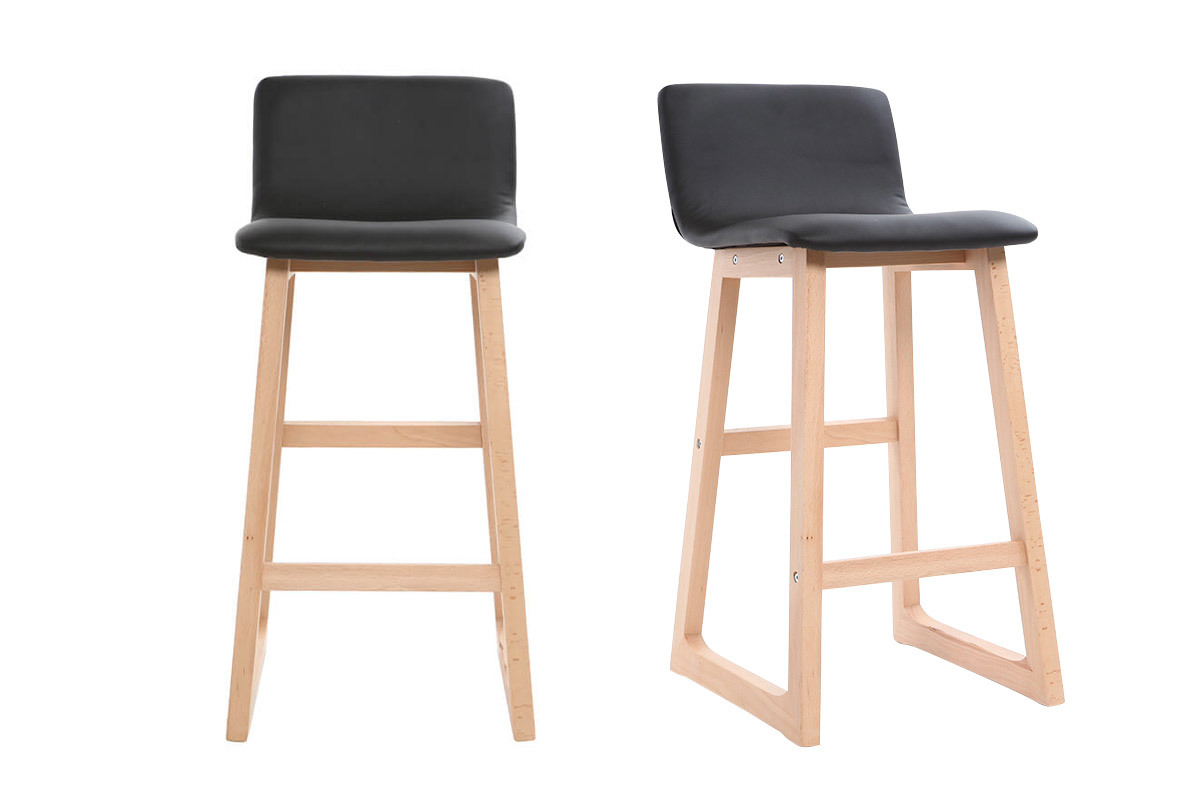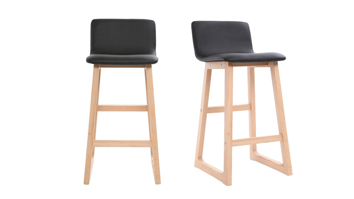Bar rime désormais avec style, grâce aux tabourets de bar bois clair et PU noir 65cm lot de 2 OSAKA.