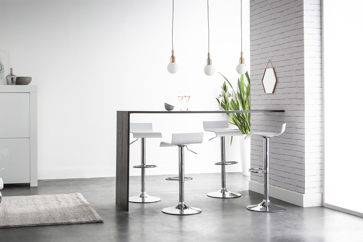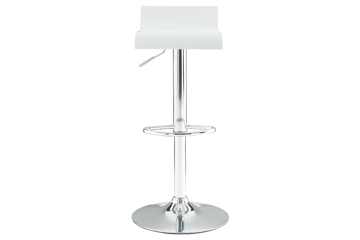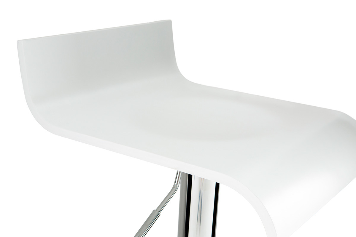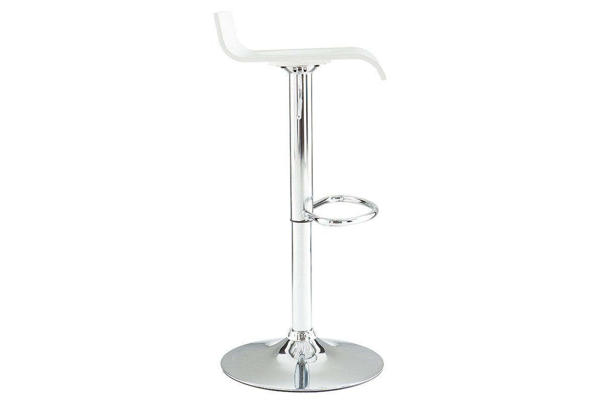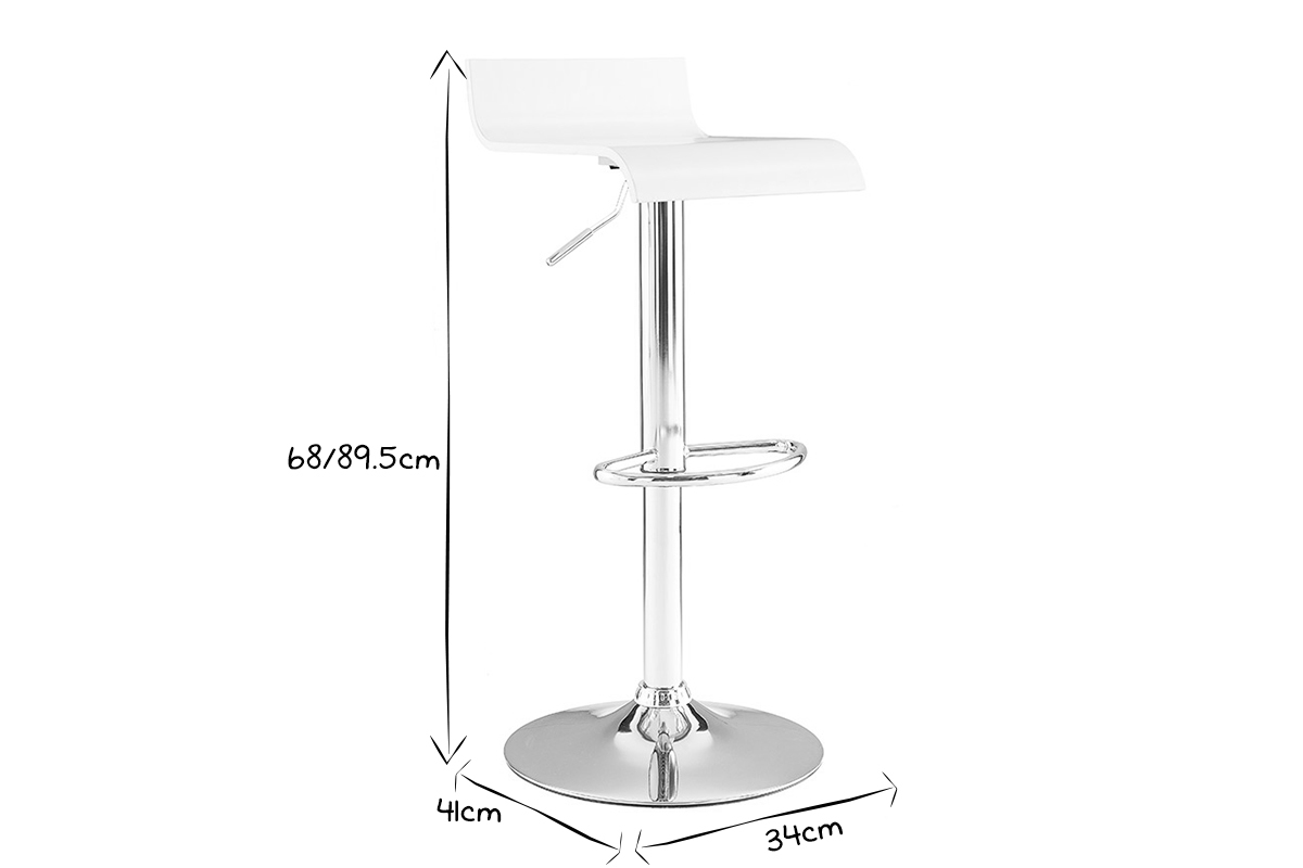 Grâce à ses dimensions L34 x L41 x H68-89.5 cm, ce modèle de petit tabouret de bar blanc et métal chromé, offre un faible encombrement à ses utilisateurs. Parfait dans un espace repas où chaque m² compte !