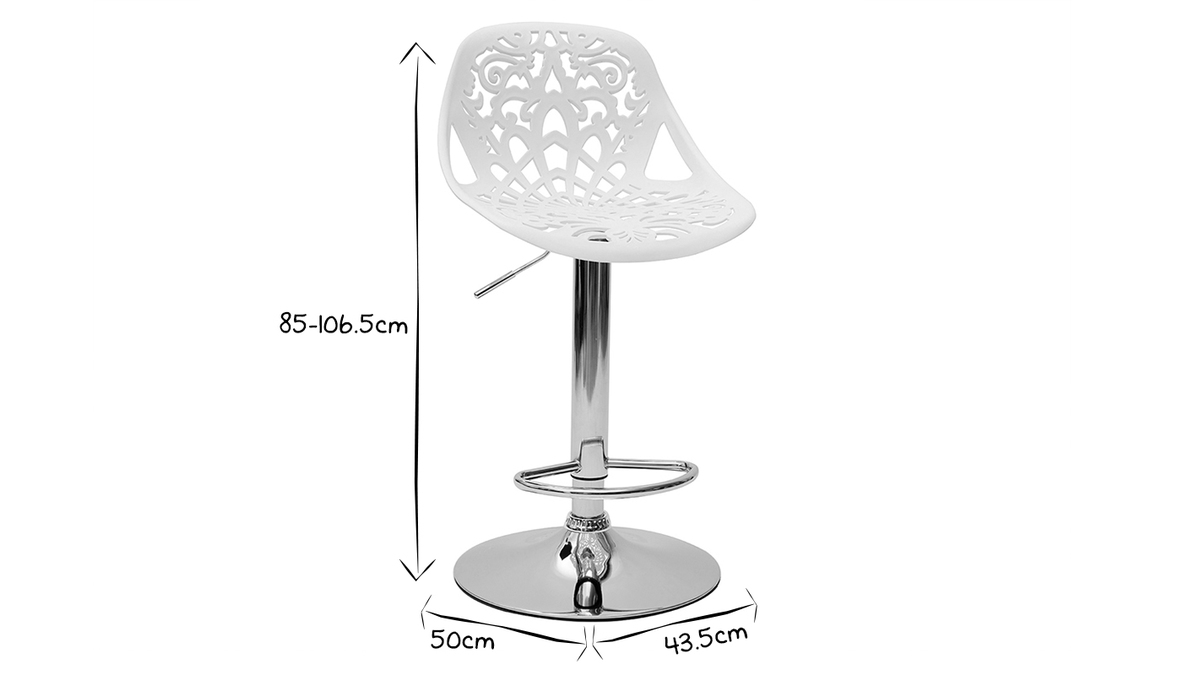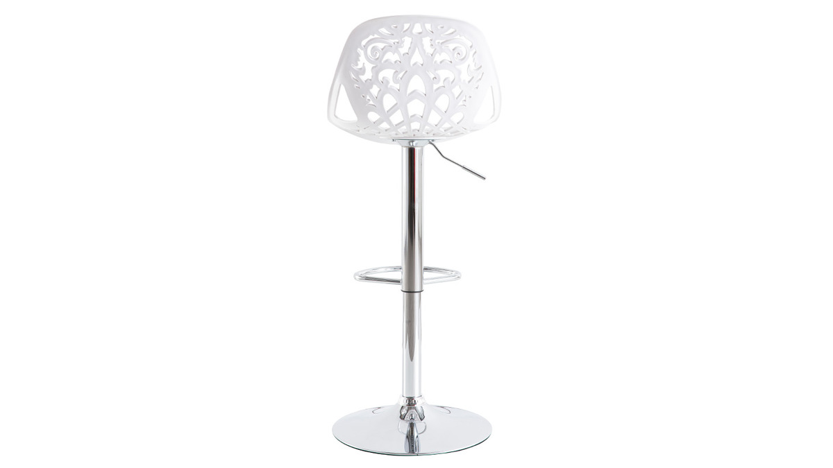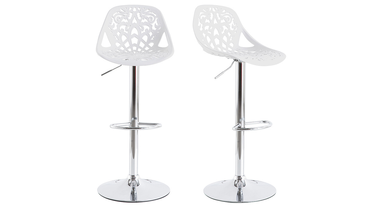 Leur assise dentelée et leur forme tout en rondeur confèrent une ambiance baroque à tous types d'intérieur. Faites le choix d'une déco originale et résistante avec ces tabourets hauts en polypropylène blanc montés sur un pied en acier chromé.