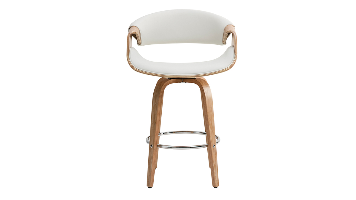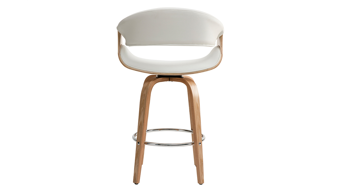 Son design original associe avec brio les matériaux et les tons chers au style nordique avec les codes du contemporain. L'association du bois clair et du polyuréthane blanc apportera chaleur et clarté à votre espace repas. Le cercle métallique en acier chromé servant de repose-pied est la touche moderne qui fait le petit plus de cette chaise haute.
