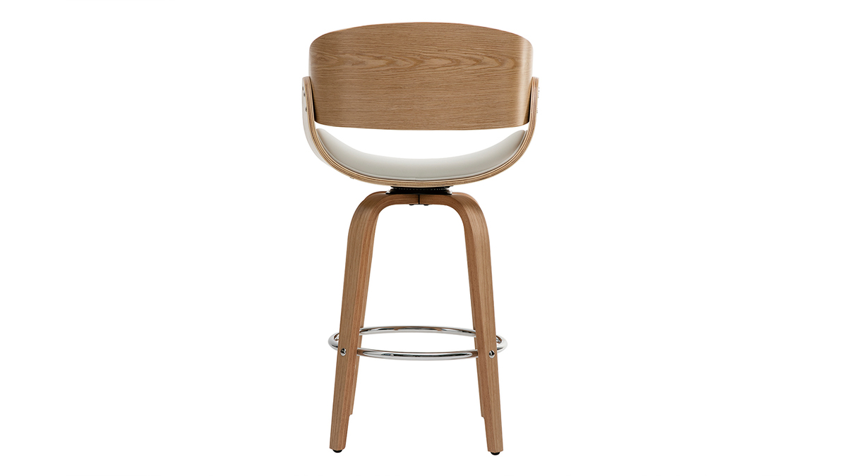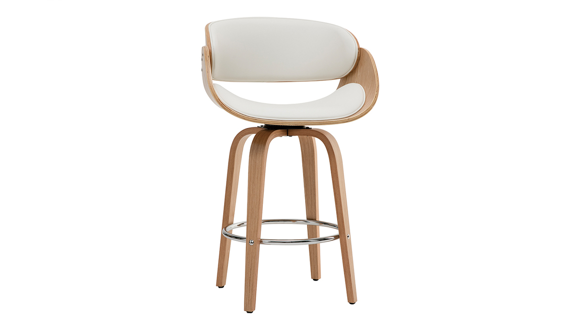 Tabouret de bar pivotant blanc et bois clair 65 cm BENT