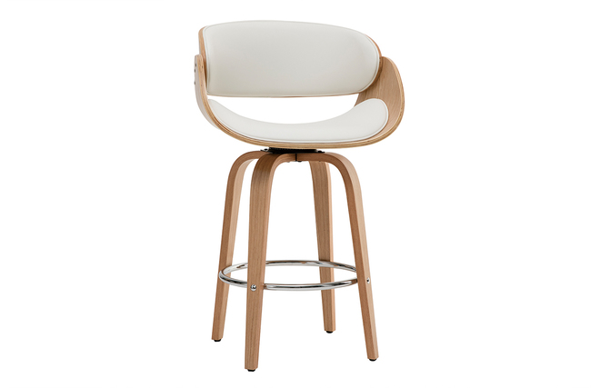 Ce tabouret de bar BENT est composé d'un subtil mélange de bois et de polyuréthane, ce qui lui assure un look original et tendance, facile à intégrer dans un intérieur. Son design épuré et tout en courbe qui rappelle le style scandinave en fait une assise singulière et unique. Son piètement est tout aussi original et moderne avec ses pieds en bois et son repose-pied en métal chromé.