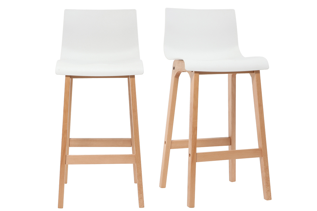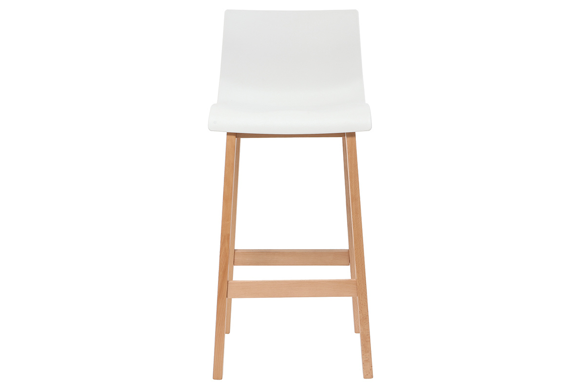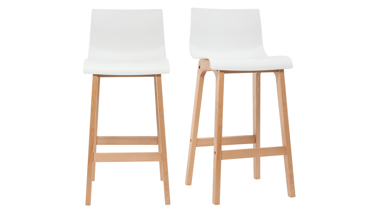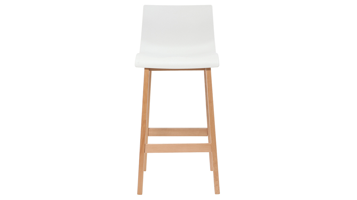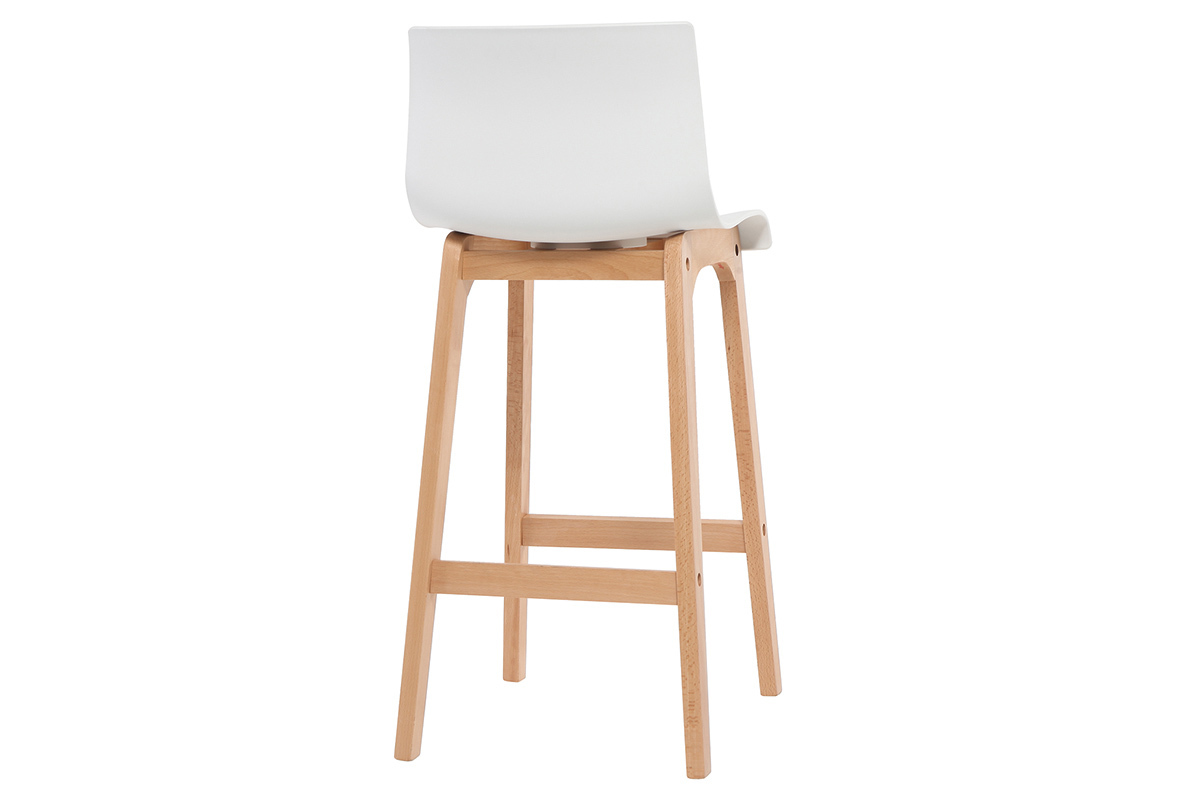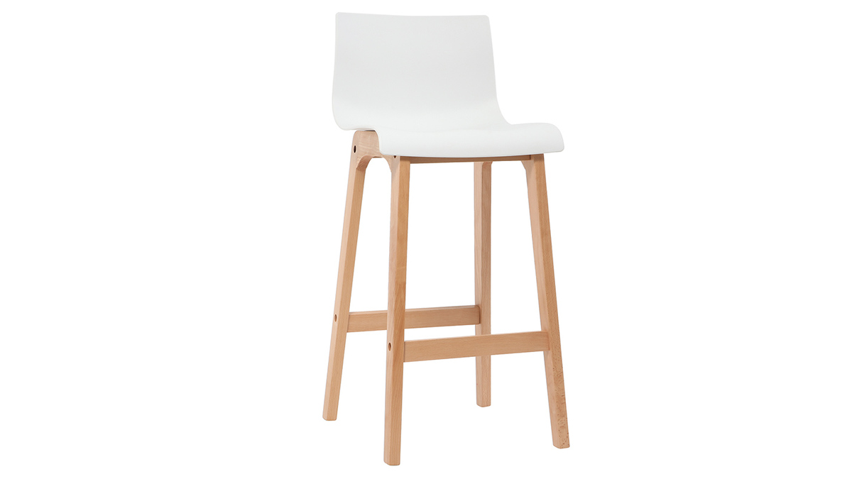 Le tabouret de bar design NEWSURF dispose d'un dossier haut et d'un repose pied pour plus de confort et des pieds en hêtre massif.