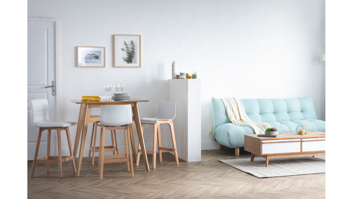 Le tabouret de bar EMMA dispose d'un assise de 65cm de haut. Il s'adapte donc à un bar ou à un îlot central d'une hauteur d'environ 90cm.