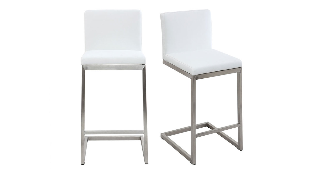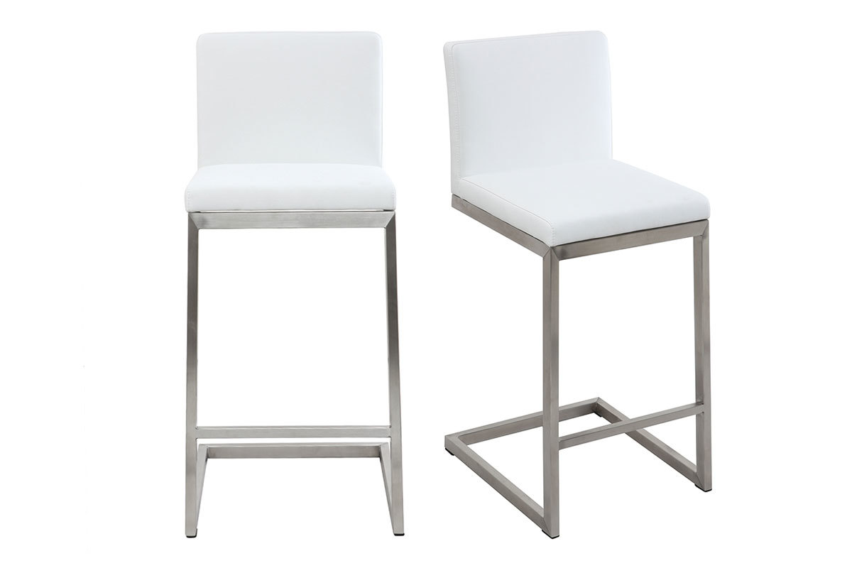 Ces tabourets sont composés d'une assise en polyuréthane, d'une densité de 45 kg/m³, et d'un pied en métal brossé.