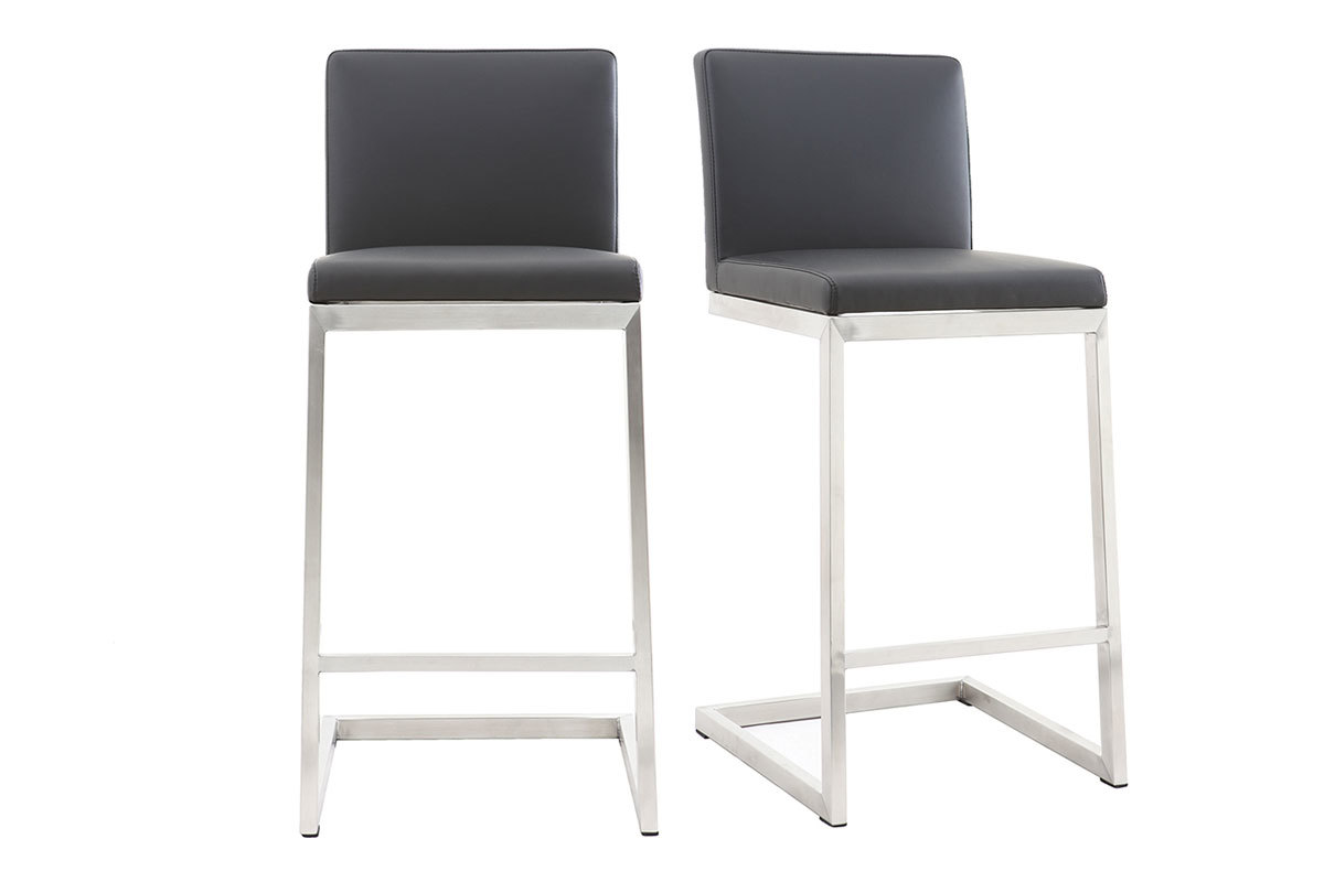 Ces tabourets sont composés d'une assise en polyuréthane, d'une densité de 45 kg/m³, et d'un pied en métal brossé.