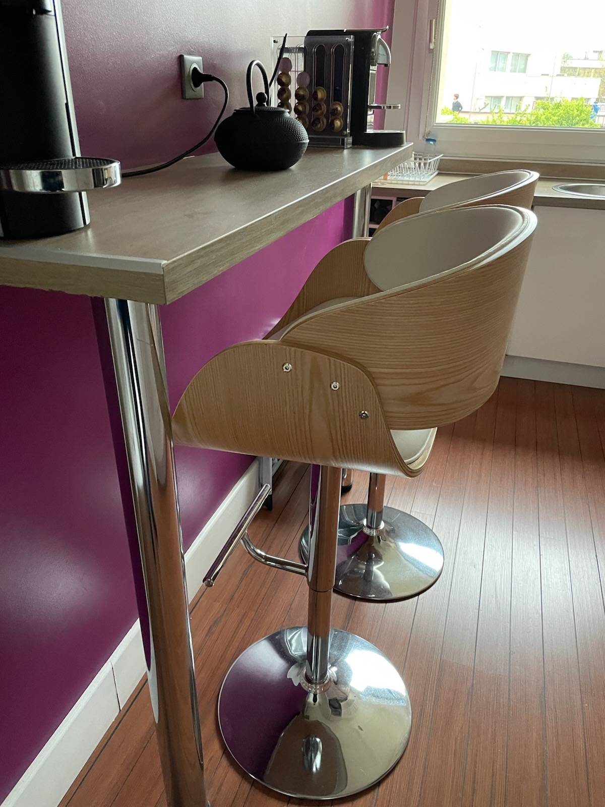 Le tabouret de bar BENT bois clair et noir réunit design original et confort d'assise optimal pour un siège haut idéal lorsqu'on cherche à se créer un vrai coin repas dans la cuisine ou le séjour.