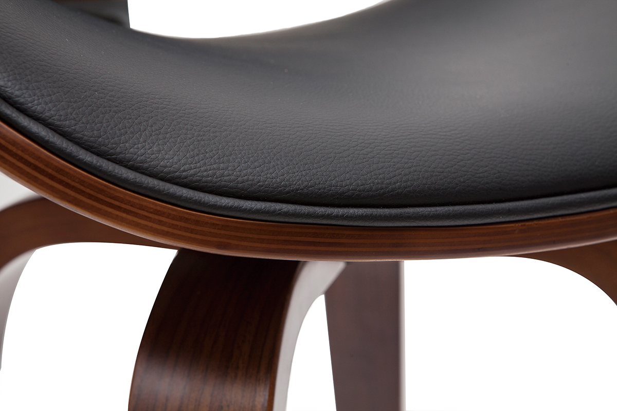 Avec son design travaillé tout en rondeur, cette chaise haute apportera douceur et modernité à votre espace repas. Sa structure en bois foncé chaleureuse associée à son assise en polyuréthane noir fait de ce tabouret de bar un élément tendance. Inspiré du mobilier vintage, il est aussi irrésistiblement contemporain grâce à ses courbes et son piètement muni d'un repose-pied rond en acier chromé.