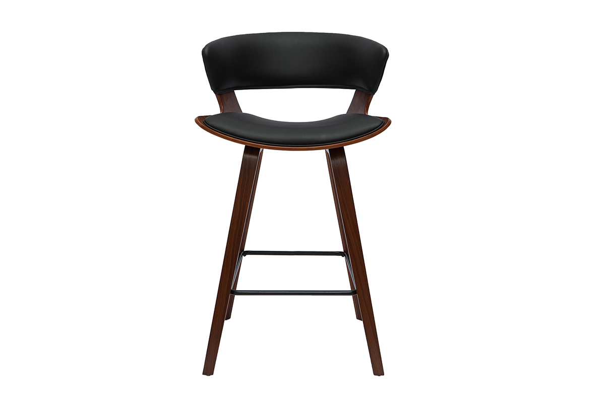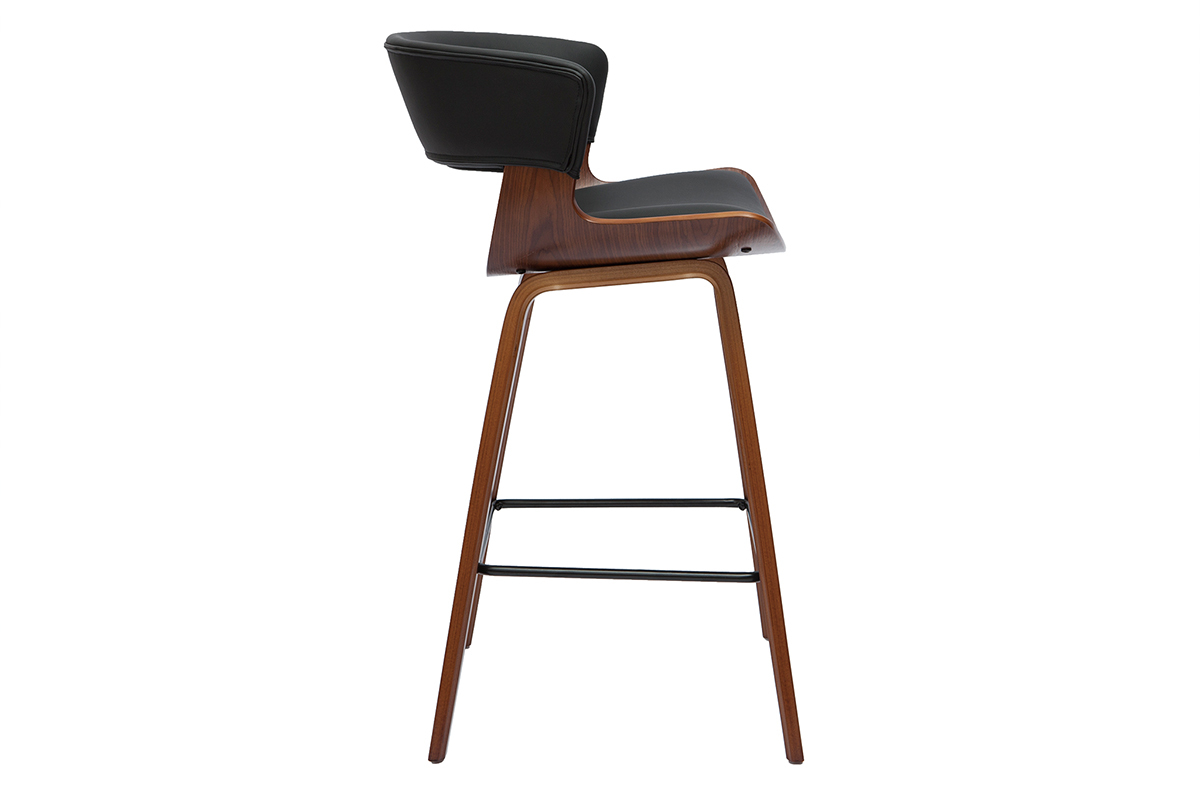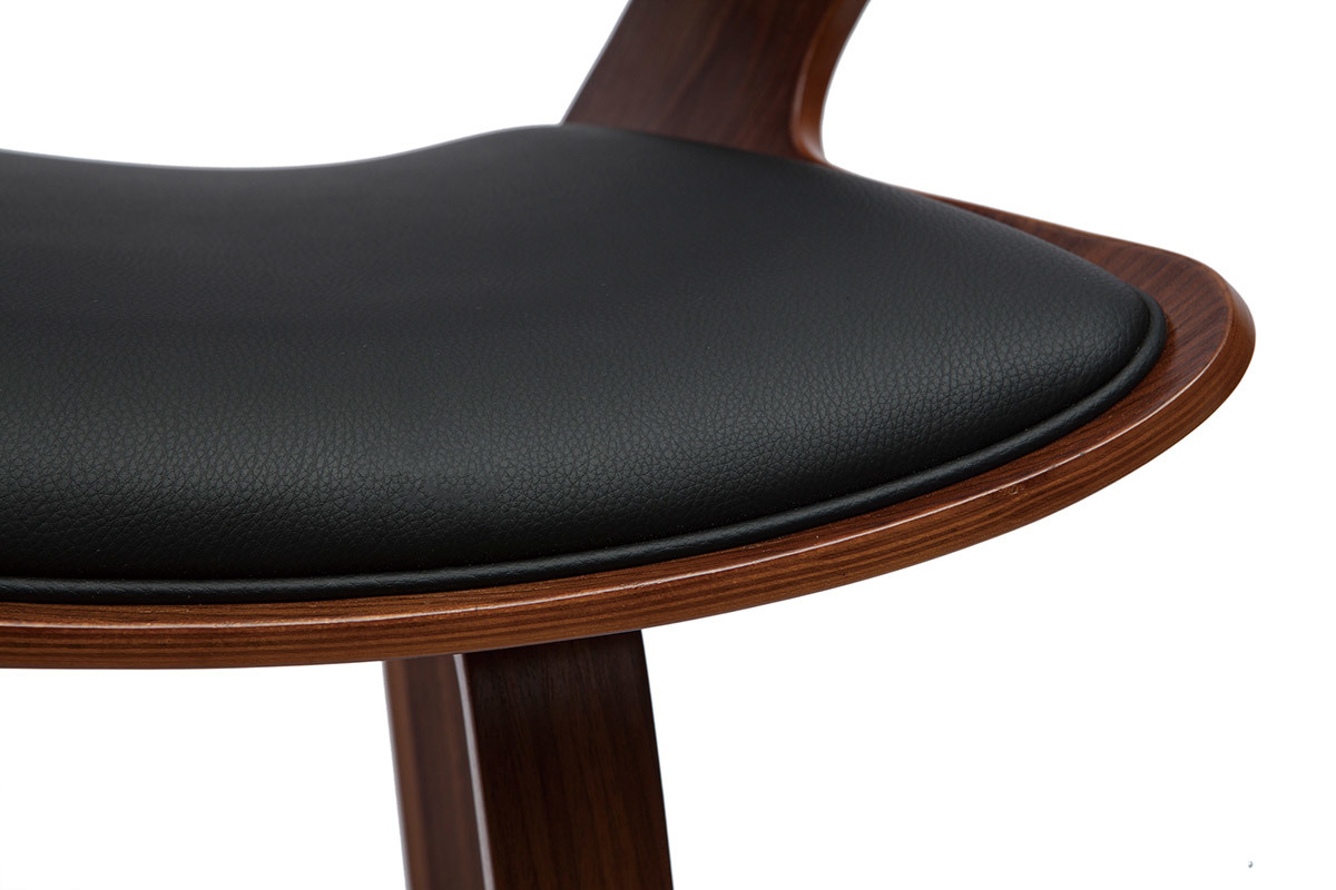 Entre son revêtement en polyuréthane noir, sa structure en bois foncé et son repose-pieds en métal noir, il se veut aussi design que chaleureux. Cette association de matières ainsi que ses lignes courbées font de lui un objet déco dans l'air du temps qui fera tout son effet dans votre intérieur.