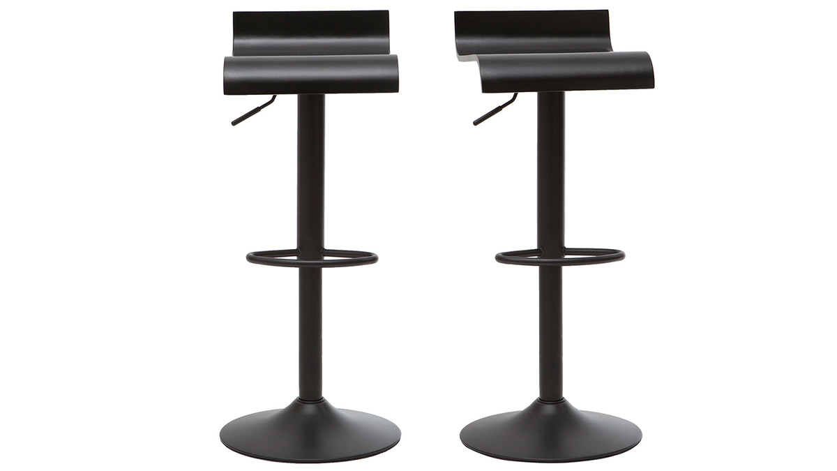 Ces tabouret hauts sont un mélange de style et de praticité. Leurs lignes épurées et leur design contemporain sont complétés par des équipements conçus pour un confort optimal. Si le total look noir donne à l'ensemble un style moderne, le repose-pieds, la forme courbe du siège et le petit dossier apportent tout le confort nécessaire. L'assise a été pensée pour pivoter à 360° et la base équipée d'une bande antidérapante et antirayure. Ces chaises design de bar sont ainsi adaptées pour un usage régulier. Grâce à leur teinte intemporelle, ce sont les sièges idéaux pour meubler séjours et cuisines.