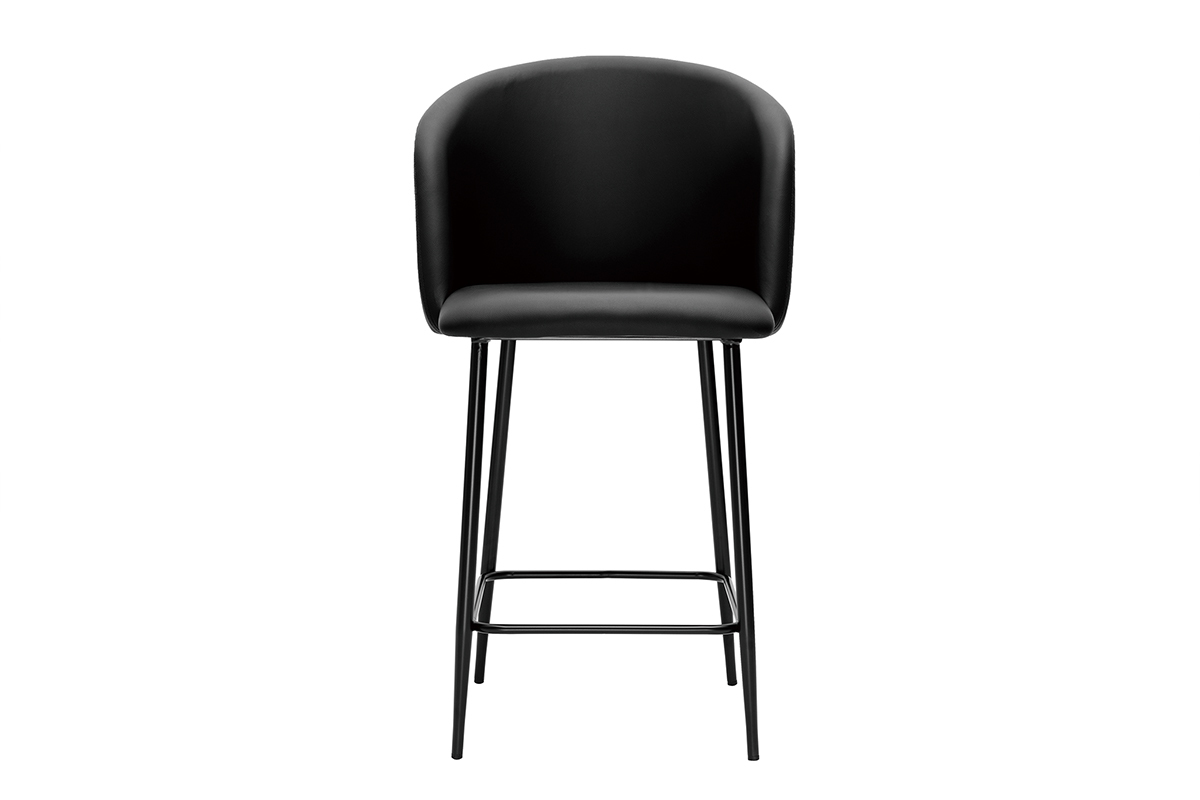 Le tabouret de bar VANITY se distingue par son dossier enveloppant (L56 x H39 cm) qui forme comme un rempart. La coque est entièrement rembourrée (densité 25 kg/m3) afin de vous garantir un excellent confort d'assise. Avec ses lignes rebondies et ses contours arrondis, ce tabouret de bar invite à la convivialité. Discret et élancé, le piètement en métal noir avec repose-pieds intégré apporte une grande légèreté visuelle et s'intègre facilement dans tous les intérieurs.