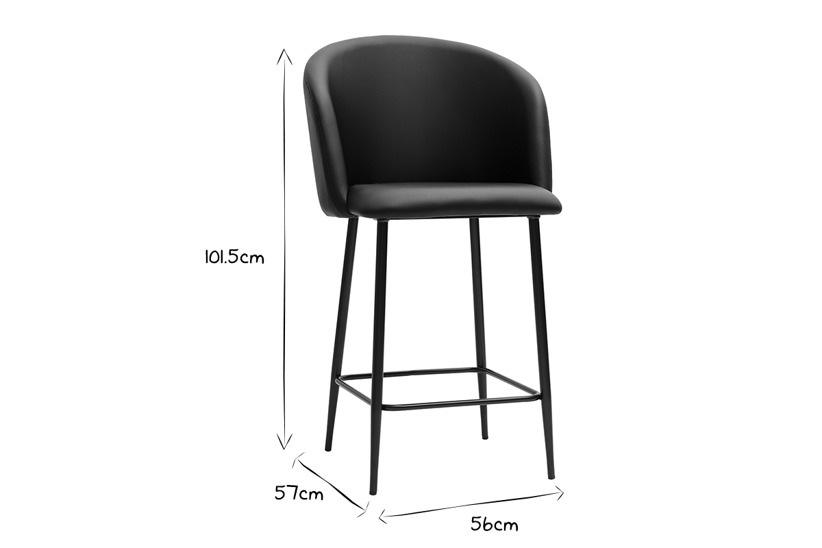 Cette chaise de bar est habillée d'un sublime revêtement en polyuréthane noir au toucher lisse. Sa couleur sobre et élégante, définit les contours d'une atmosphère chic et moderne.