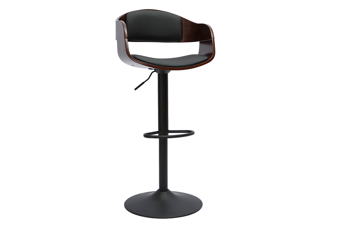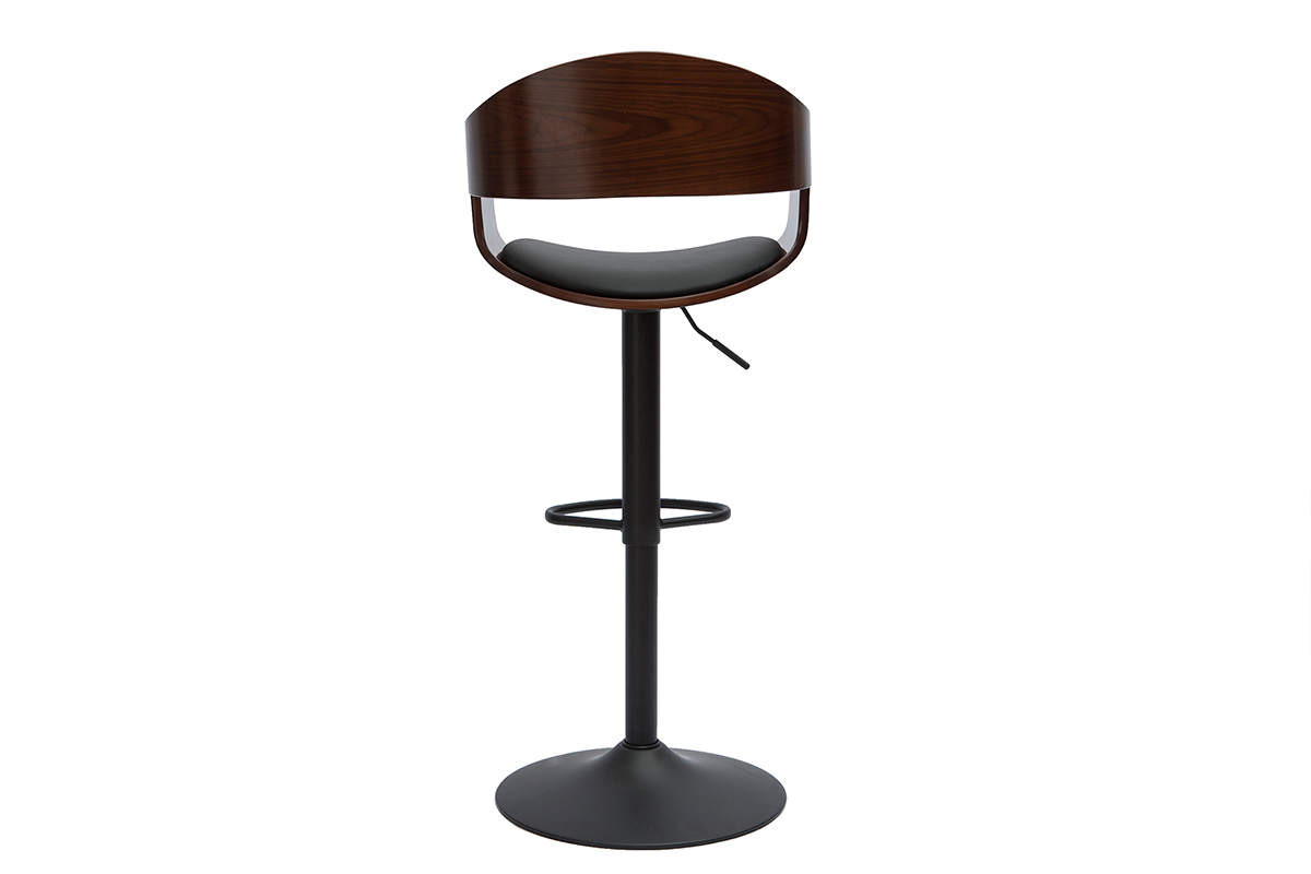 Tabouret de bar design réglable noir et bois foncé EUSTACHE livré prêt à assembler. La base et le pied s'assemblent très simplement à l'aide de vis (fournies).