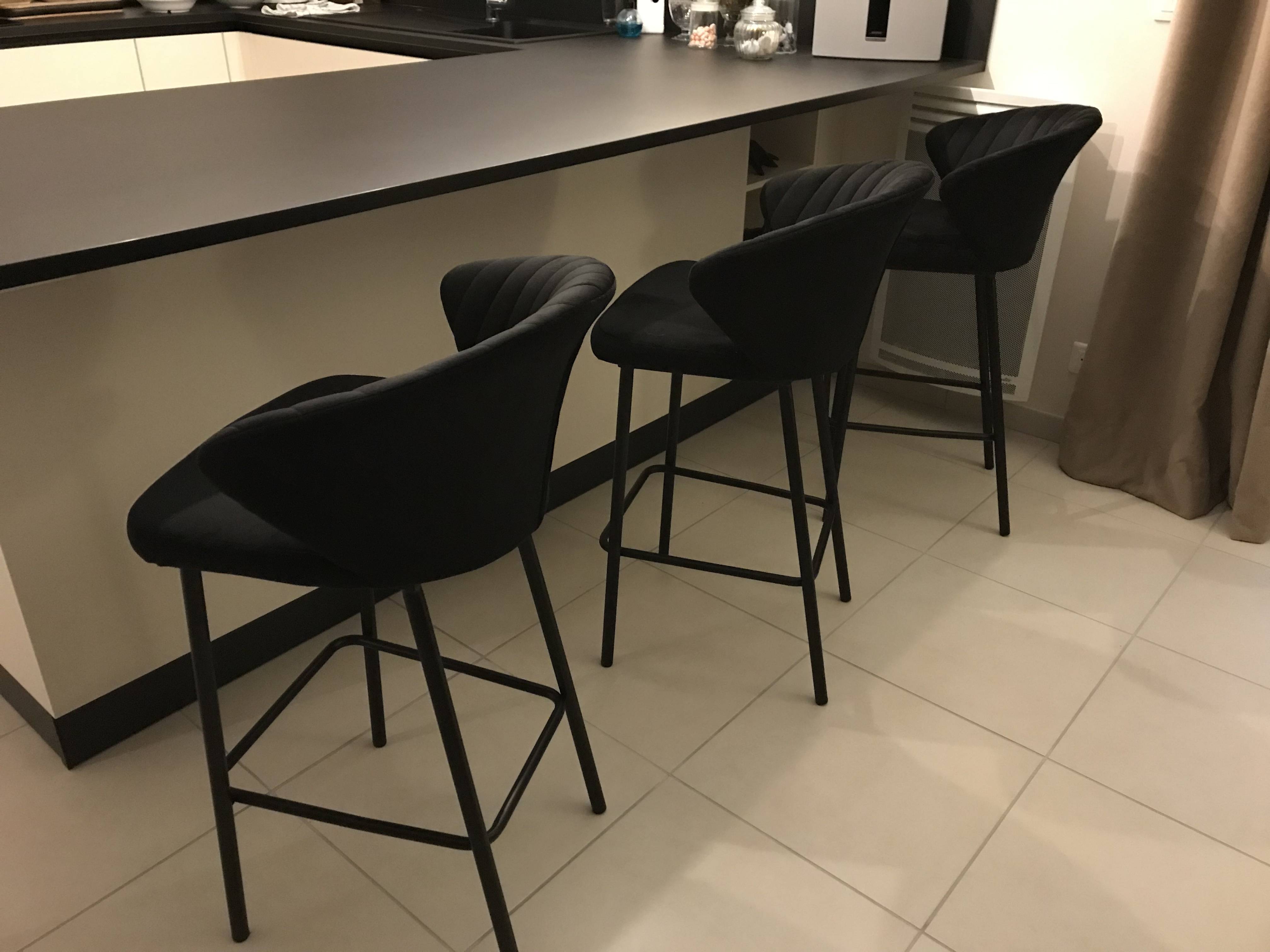 Cette chaise haute associe avec finesse un esprit classique, représenté par un dossier avec surpiqûres et un beau revêtement en en tissu velours gaufré, à un design moderne aérien. Cette combinaison de styles et de matériaux fait de ce tabouret de bar un élément particulièrement élégant et raffiné.