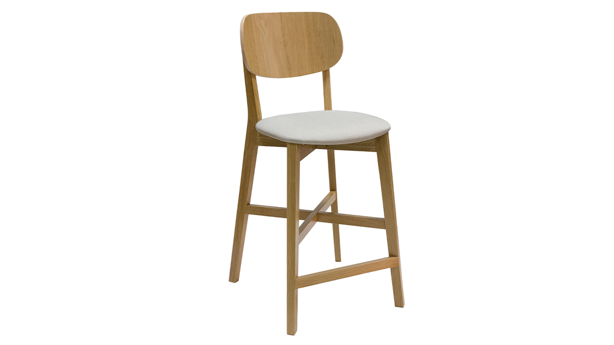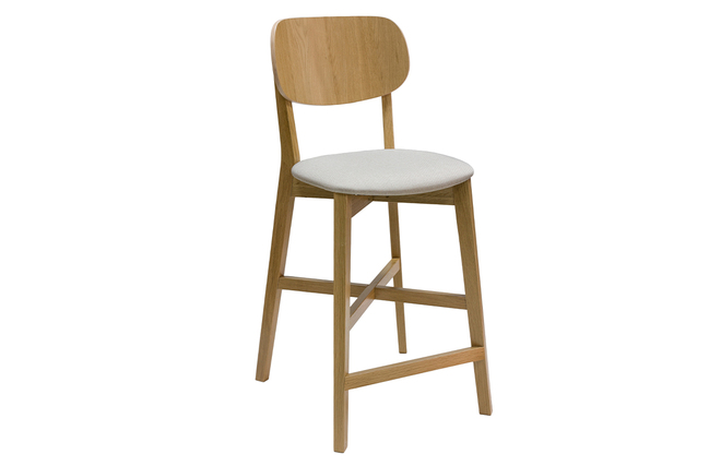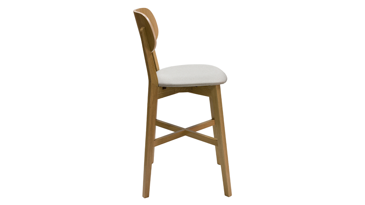Avec sa confortable assise, ce tabouret de bar en bois vous accompagne au quotidien. Il se compose d'une structure en contreplaqué chêne et de quatre pieds en chêne massif. La douceur de ses courbes et l'authenticité de sa structure en bois sont de beaux atouts pour un intérieur de charme. Ce tabouret haut en bois clair et tissu beige est muni d'une traverse de manière à garantir une stabilité parfaite. Le dossier incurvé et l'assise rembourrée (densité de la mousse 35 kg/m3) offrent un confort durable. L'assise est recouverte d'un joli revêtement tissu aussi agréable au regard qu'au toucher et très facile d'entretien.