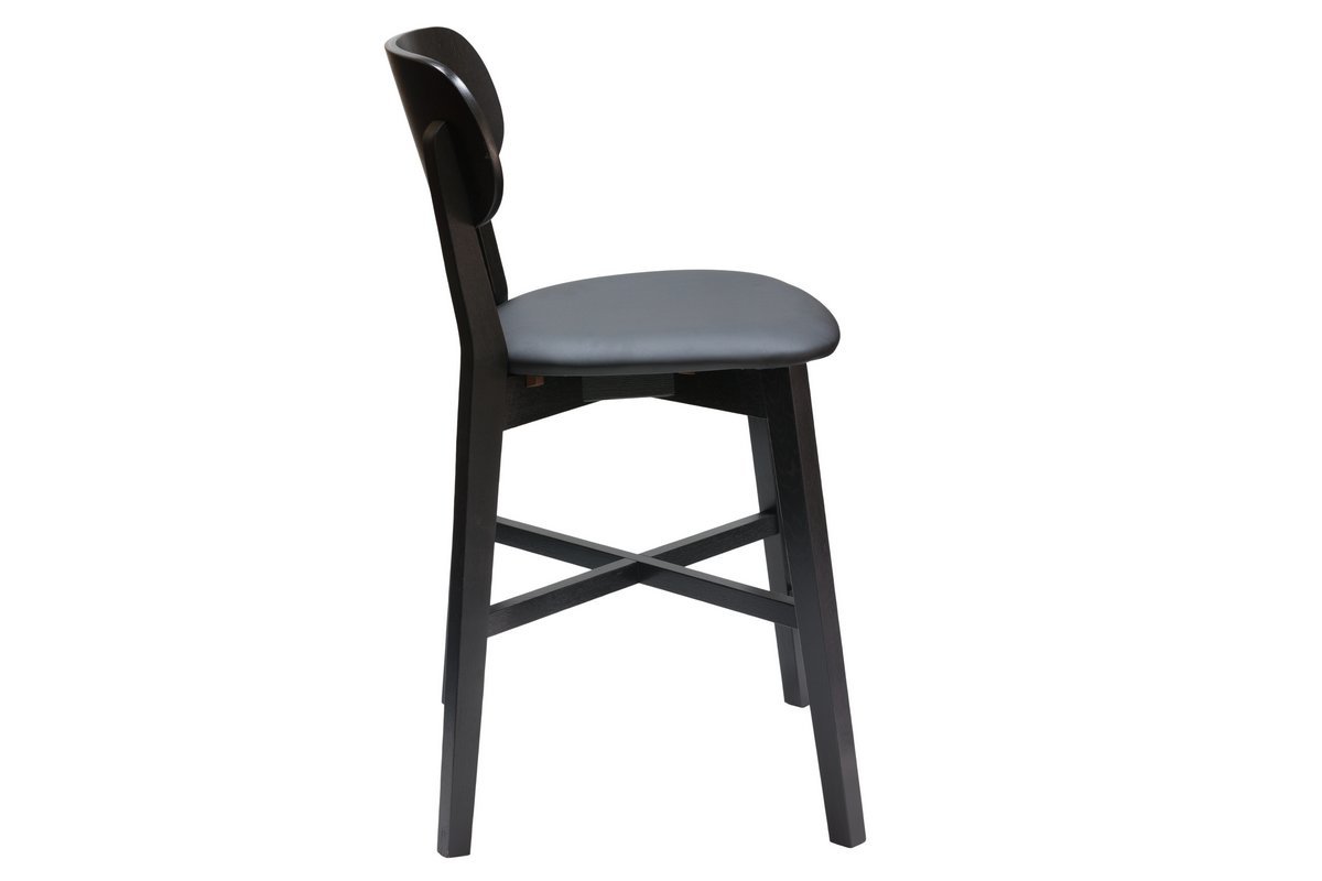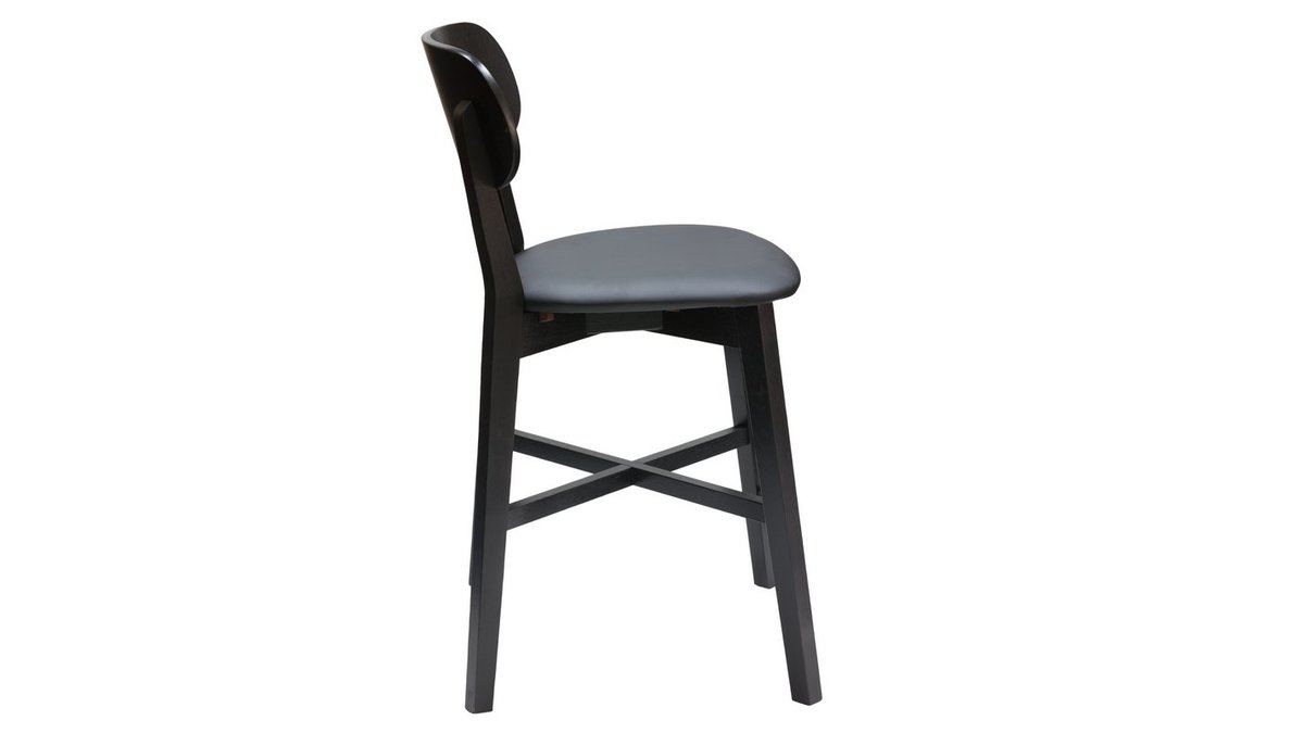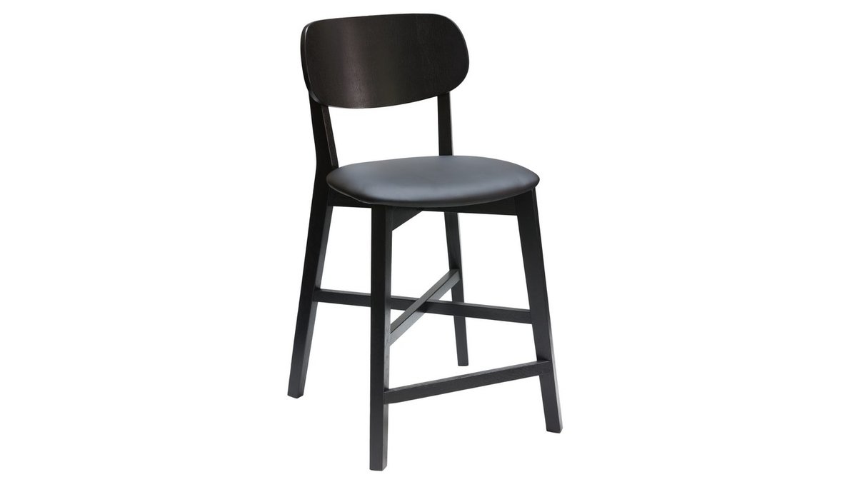 Perché sur quatre pieds en chêne massif teinté noir, le tabouret haut LUCIA est muni d'une traverse de manière à garantir une stabilité parfaite. Avec son dossier incurvé et son assise rembourrée (densité de la mousse 35 kg/m3), il offre un excellent confort au quotidien. L'assise est recouverte d'un joli revêtement noir lisse, doux au toucher et facile d'entretien (100 % polyuréthane).