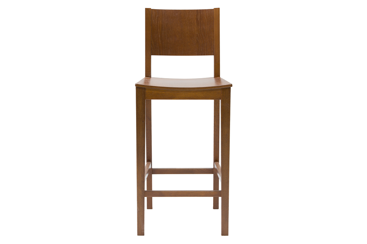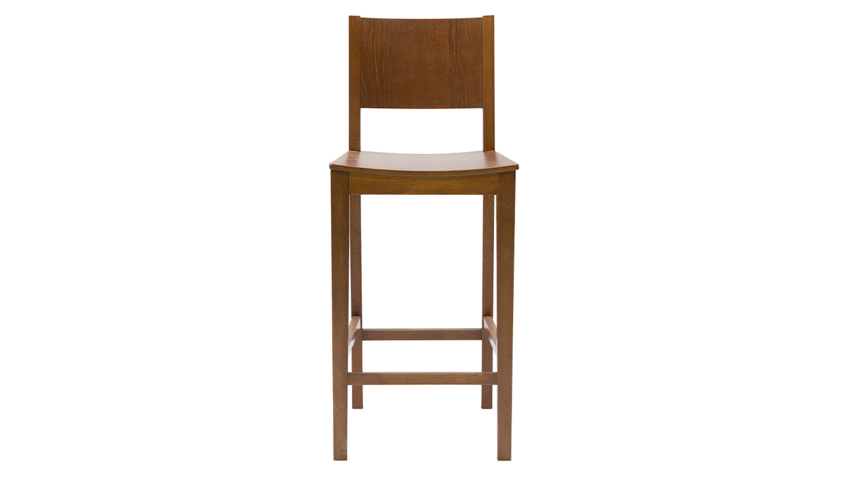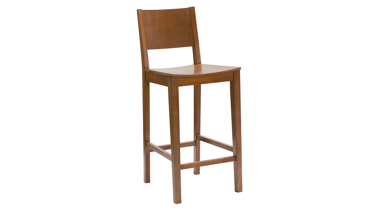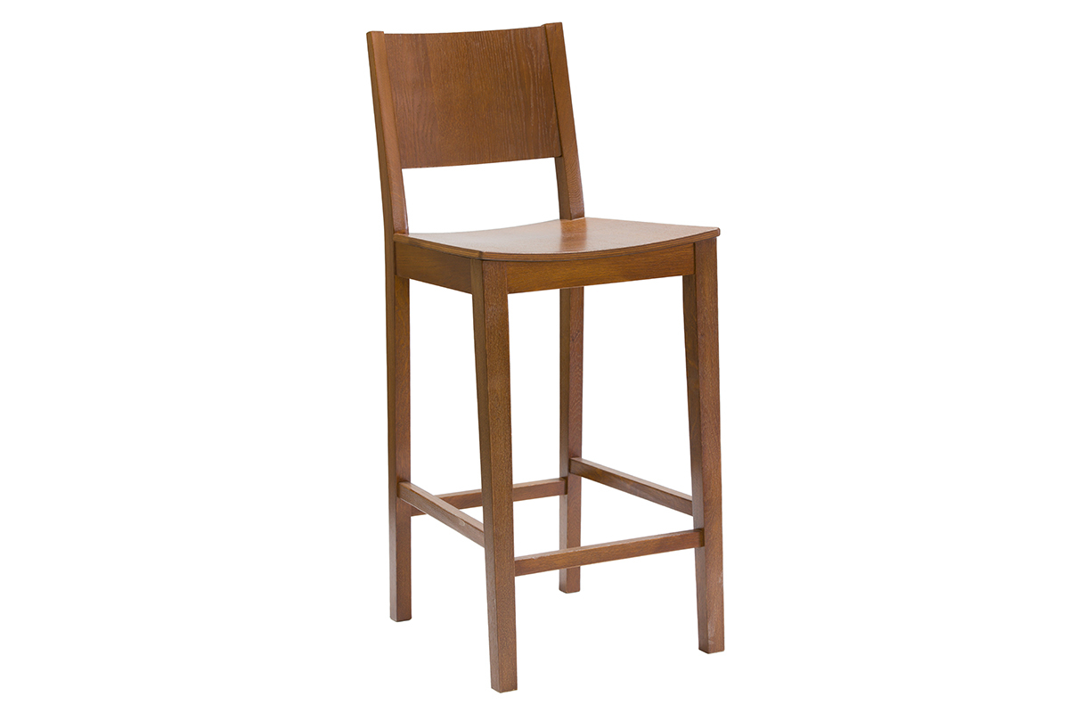 Ce tabouret de bar en bois fabriqué en Europe a une hauteur d'assise de 65 cm. En plus d'être robuste, cette chaise de bar bois foncé offre une assise agréable grâce à un dossier haut et à un repose-pied justement positionné.