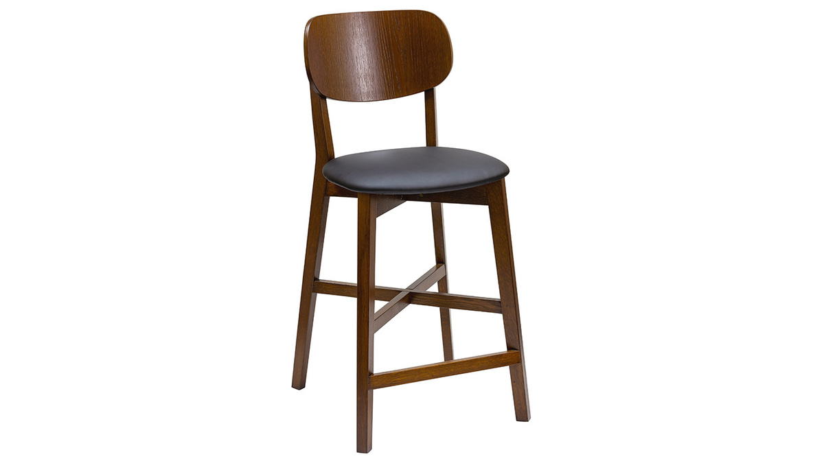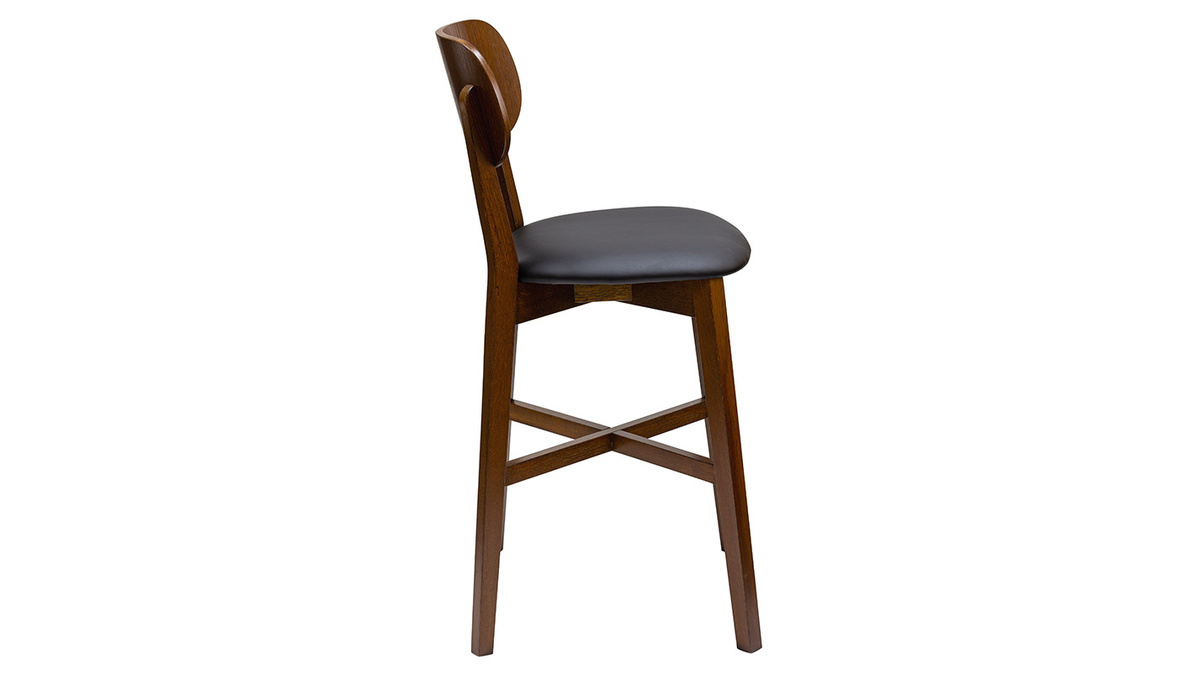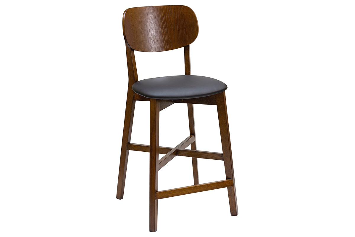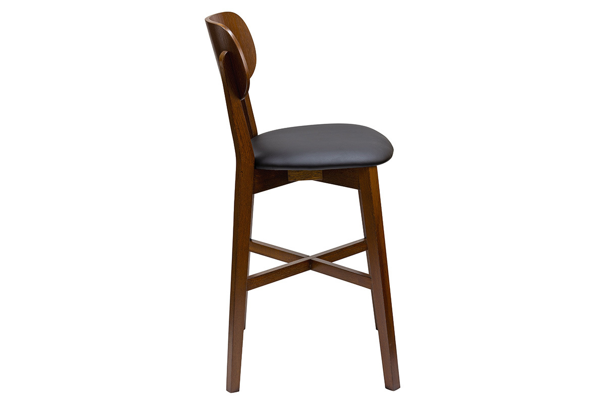Avec sa confortable assise, ce tabouret de bar en bois vous accompagne au quotidien. Il se compose d'une structure en contreplaqué chêne teinté noyer et de quatre pieds en chêne massif teinté noyer. La douceur de ses courbes et l'authenticité de sa structure en bois sont de beaux atouts pour un intérieur de charme. Ce tabouret haut est muni d'une traverse de manière à garantir une stabilité parfaite. Le dossier incurvé et l'assise rembourrée (densité de la mousse 35 kg/m3) offrent un confort durable. L'assise est recouverte d'un joli revêtement noir lisse, doux au toucher et très facile d'entretien (100 % polyuréthane).