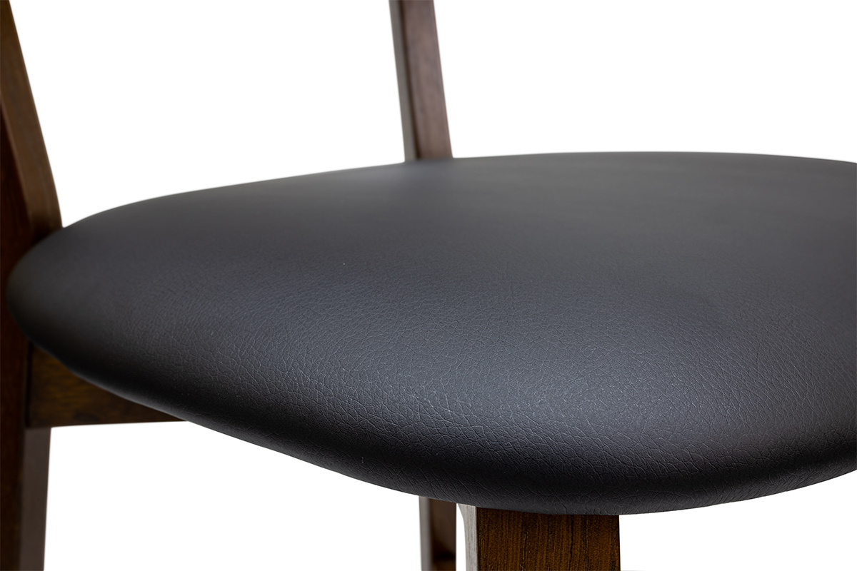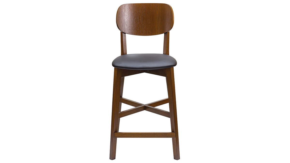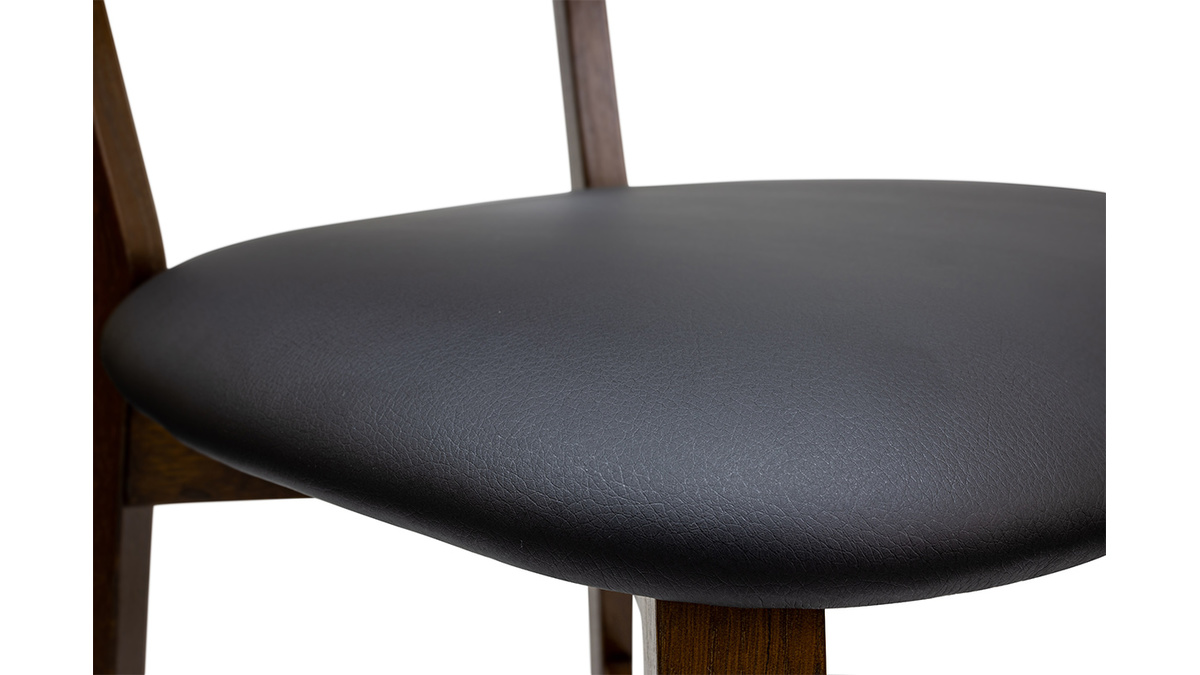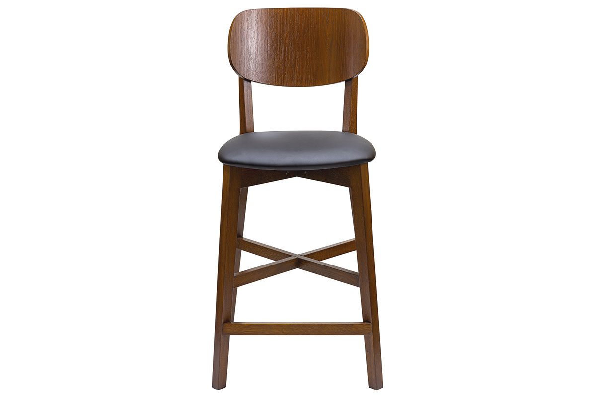 Avec sa confortable assise, ce tabouret de bar en bois vous accompagne au quotidien. Il se compose d'une structure en contreplaqué chêne teinté noyer et de quatre pieds en chêne massif teinté noyer. La douceur de ses courbes et l'authenticité de sa structure en bois sont de beaux atouts pour un intérieur de charme. Ce tabouret haut est muni d'une traverse de manière à garantir une stabilité parfaite. Le dossier incurvé et l'assise rembourrée (densité de la mousse 35 kg/m3) offrent un confort durable. L'assise est recouverte d'un joli revêtement noir lisse, doux au toucher et très facile d'entretien (100 % polyuréthane).