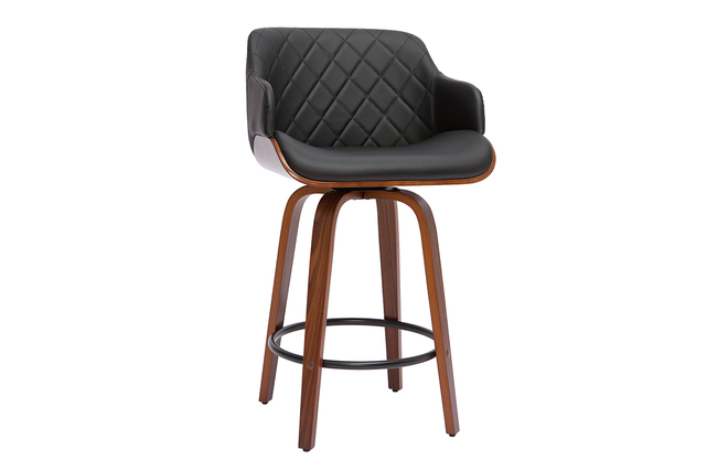 Tabouret de bar design pivotant 360° noir et bois foncé H65 cm LUCIEN livré prêt à assembler.