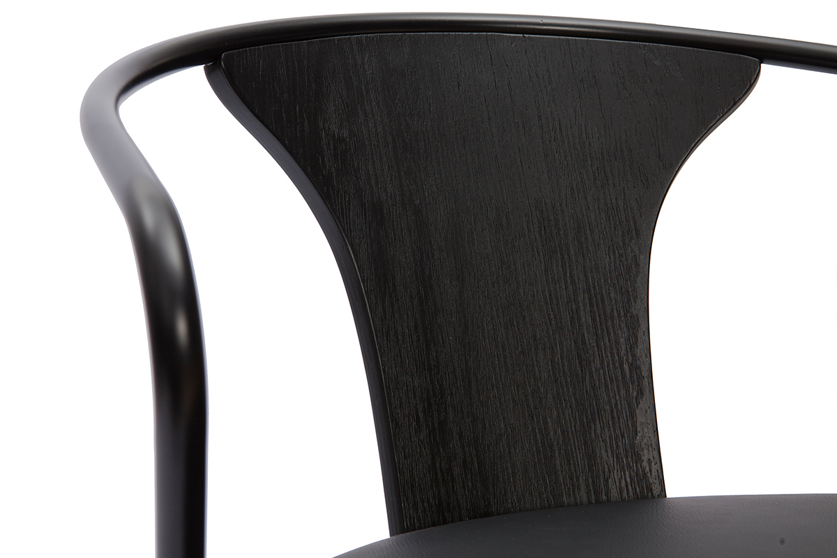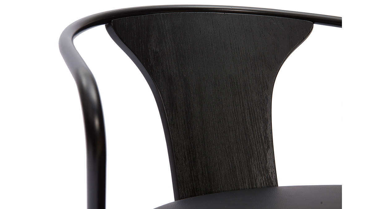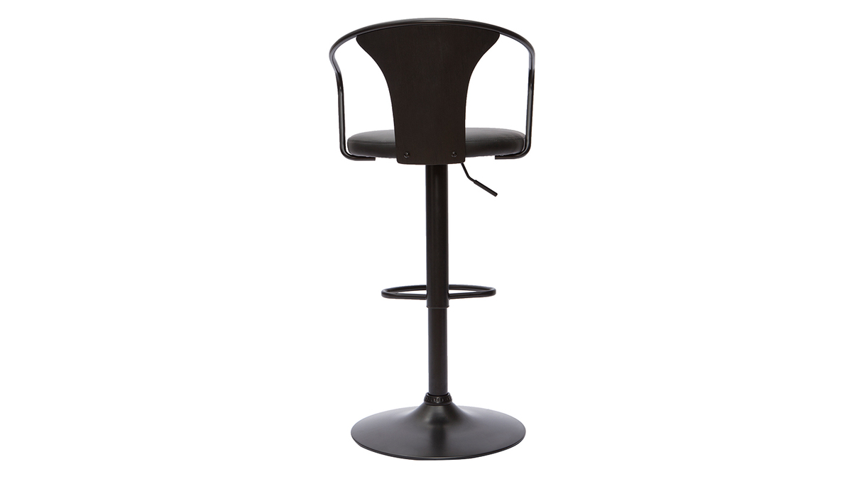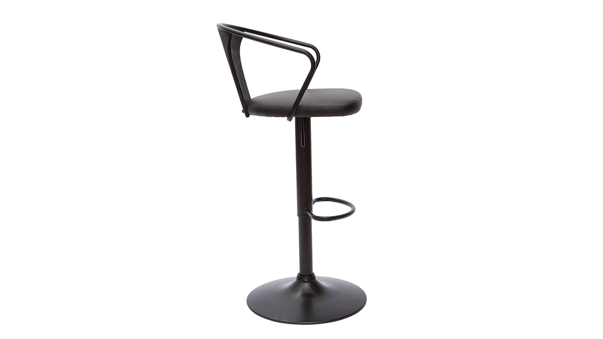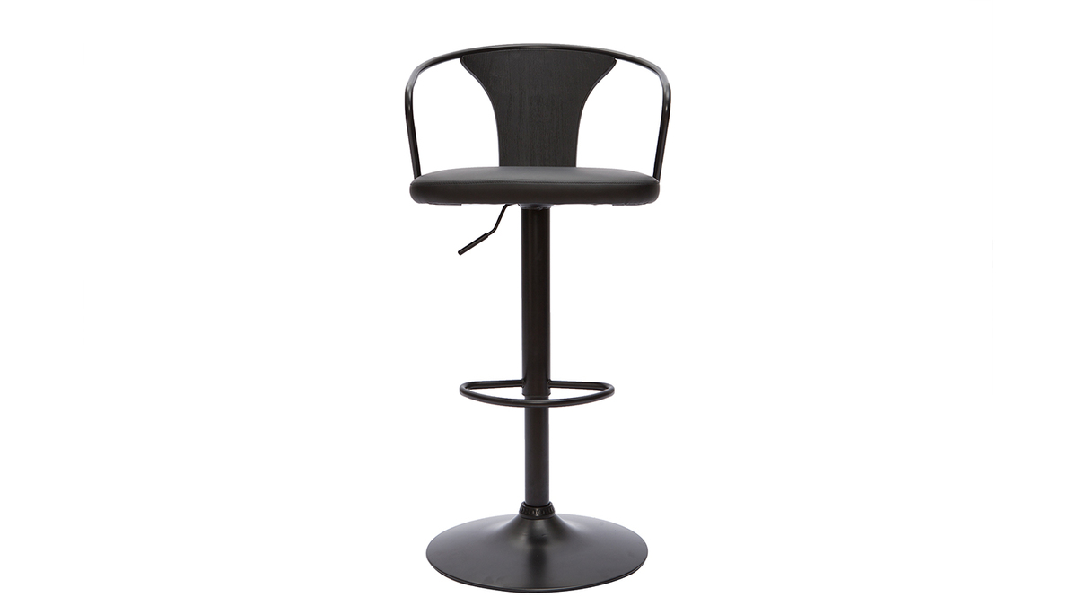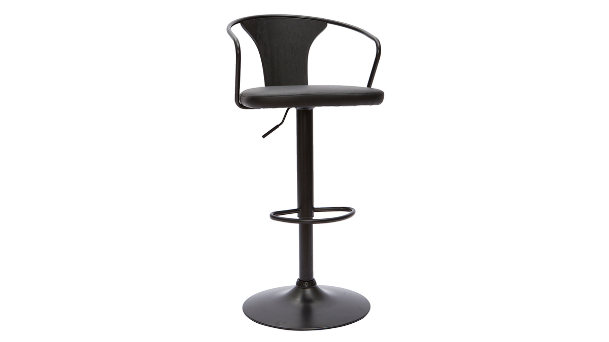 Grâce à la forme arrondie du dossier et le joli mix de matières, ce tabouret de bar industriel affiche avec allure un style vintage qui séduit toujours. Pour un rendu très esthétique, polyuréthane, métal et bois ont été recouverts d'une magnifique couleur noire - intemporelle et indémodable.