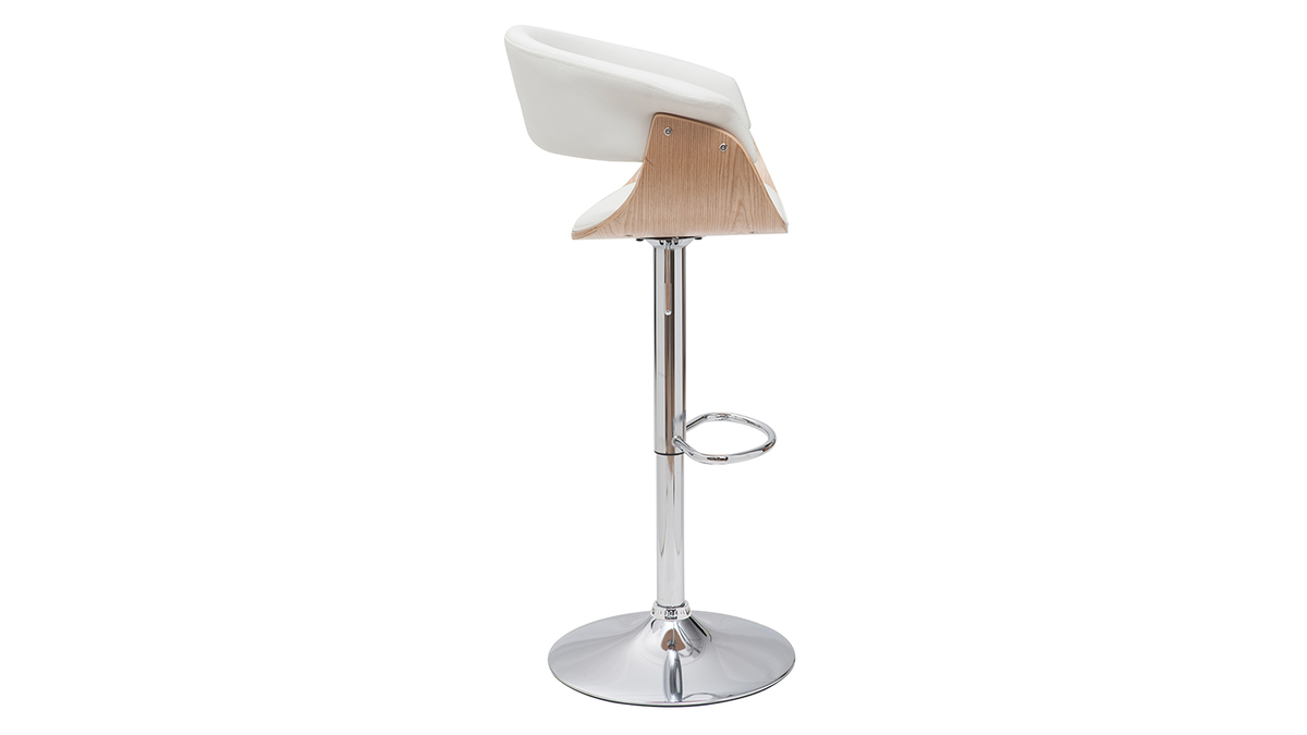 Avec son assise bimatière travaillée tout en courbes, cette chaise haute ne manque pas de personnalité. OKTAV c'est un joli mélange de bois cintré et de polyuréthane blanc, une association hautement élégante. C'est une ligne épurée et moderne qui trouvera sa place dans un séjour comme dans une cuisine contemporaine. On aime la douceur des teintes de ce tabouret haut complétée par un design unique.
