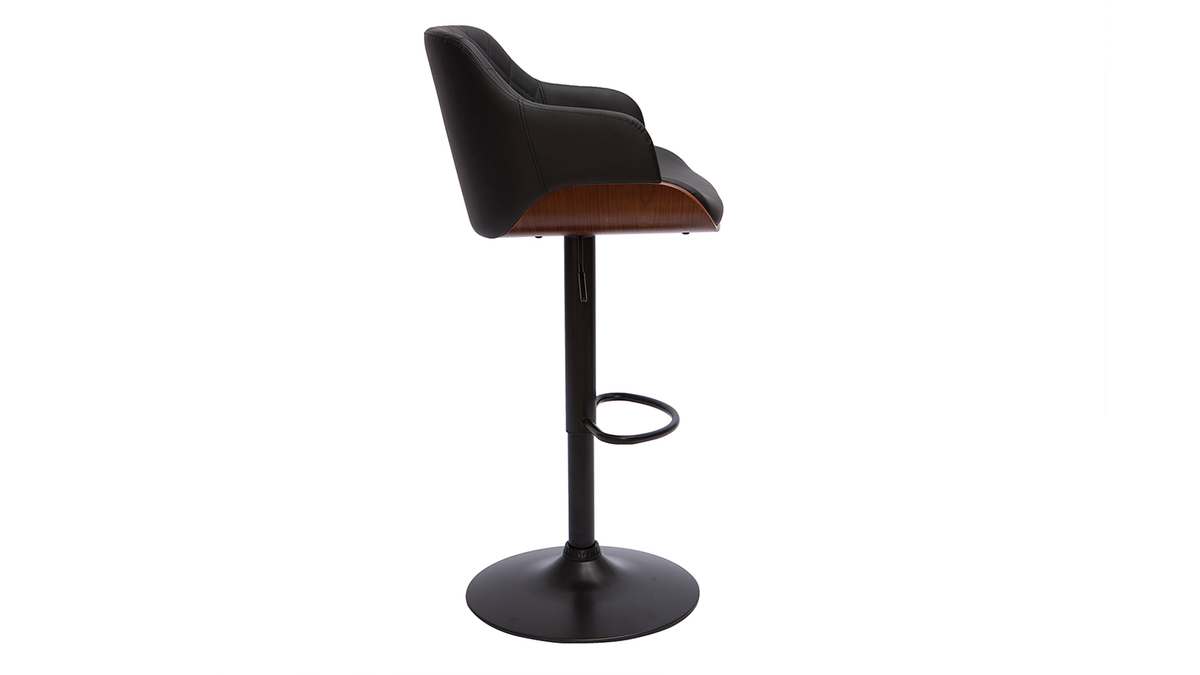 Tabouret de bar design réglable pivotant 360° noir et bois foncé LUCIEN livré à assembler.