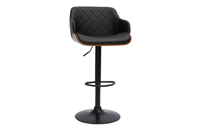 L'association du bois foncé, du polyuréthane noir et du pied en métal noir fait de ce tabouret de bar réglable 360° d'inspiration rétro, un élément déco tendance. Grâce à son style club unique qui lui vaut toute son élégance, le modèle LUCIEN se fondra avec finesse à une ambiance dandy chic ou vintage.