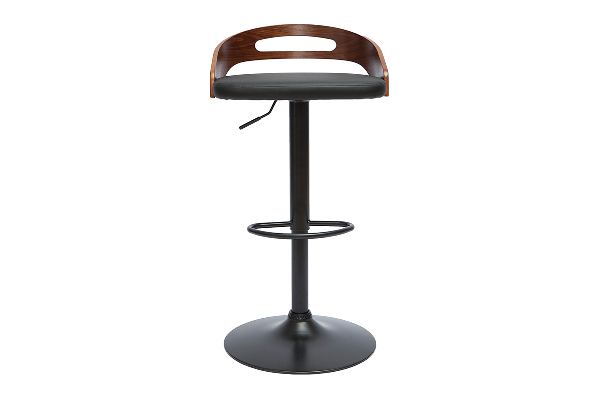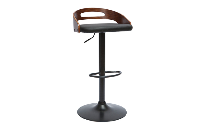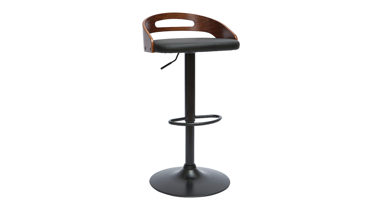 Le tabouret de bar MANO est une assise pratique et compacte travaillée dans un style contemporain parfaitement maîtrisé. Il combine une assise en bois cintré placage noyer et en polyuréthane noir avec un piètement central en métal. Ce mélange de matériau au rendu chic et moderne a toute sa place autour d'un îlot de cuisine design, d'une table haute ou d'un comptoir de bar.