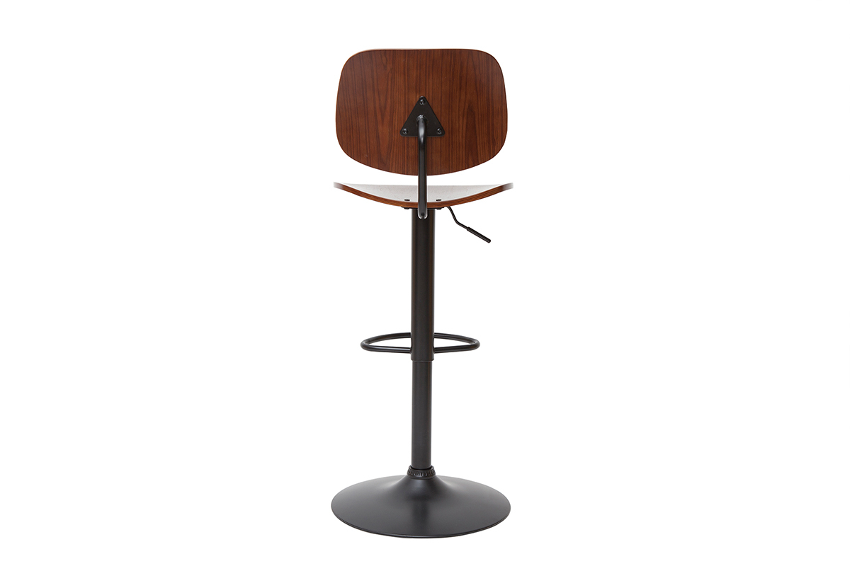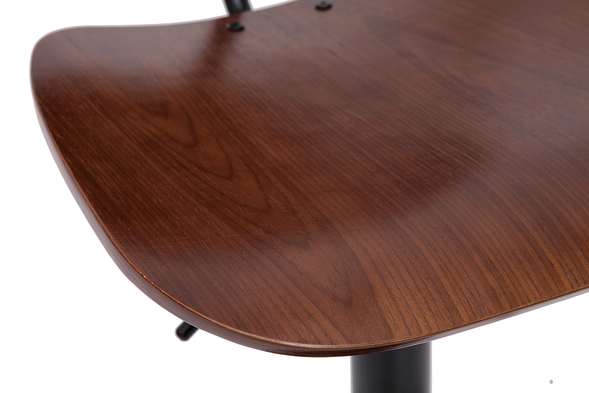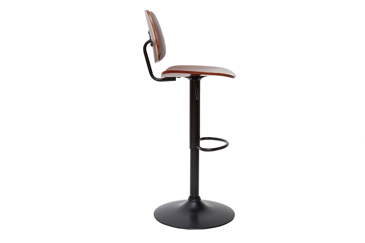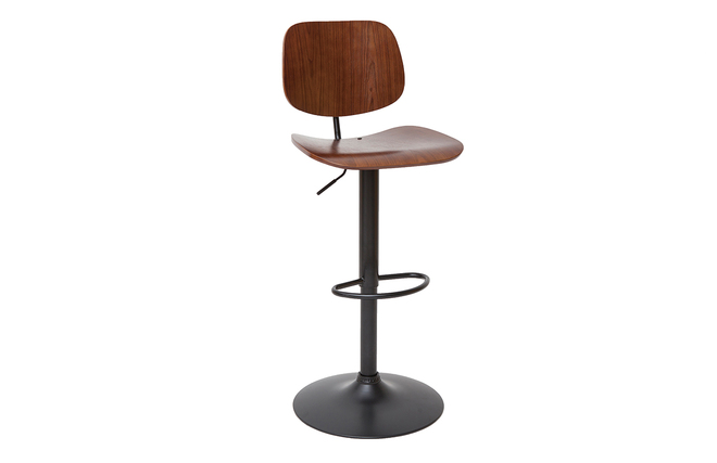 Avec son assise et son dossier en bois foncé aux angles arrondis, il évoque subtilement les pièces de mobiliers des 60's. Cultivant son propre style, il repose sur un piètement en métal noir qui contrebalance parfaitement l'effet rétro de son siège. Ce juste équlibre offre un tabouret de bar au look unique et ultra tendance !